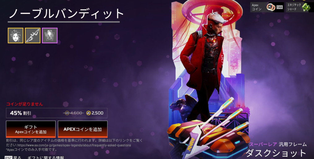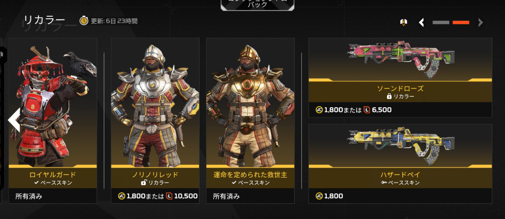 ストア情報【APEX】シーズン25ストアアップデートまとめ! 2025年5月7日 2025年5月7日最新記事 【APEX】ヴァルキリー&ホライゾンが大幅上昇!前シーズン強化のシアが1%割れ(新シーズン27開始後のピックランク) 【APEX】シーズン27、世界大会、シーズン28のスケジュール 【APEX】クリスマスverスペクターがウインターシーズンに登場 【APEX】スキン再販情報 【APEX】ALGSバッジ&トラッカー(年明け1月の札幌の時期に登場か?) ①エキゾチックショップ➁リフトハンター③ノーブルバンディット④デス・バイ・デザイン⑤シャドウ・ソサイエティストア⑥チェインストア⑦セレクトパックストア⑧コレクションレトロ⑨リカラー⑪スパロー・ローンチ Facebook Twitter