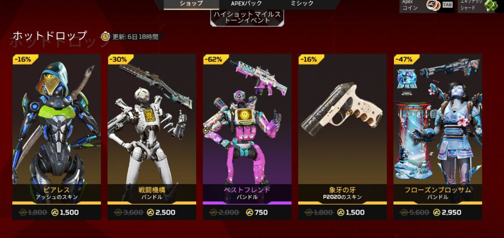 ストア情報【APEX】0723APEXストア更新 ライフラインリバイバル、リカラー、ホットドロップ、スカイダイブストア! 2025年7月23日 2025年7月23日最新記事 【APEX】シーズン27パッチノート公開!! 【APEX】APEX LEGENDS™ つまんでつなげてますこっと 11月2週から! 【APEX】R-99ミシック図鑑 【APEX】シーズン27に強化されるレジェンズのパーク画面 【APEX】バンガ、ライフライン、ワット、レイスの新スキントラッカー 7月23日にAPEXストアが更新されました!◆ライフラインリバイバル◆リカラー◆スカイダイブ◆ホットドロップ Facebook Twitter