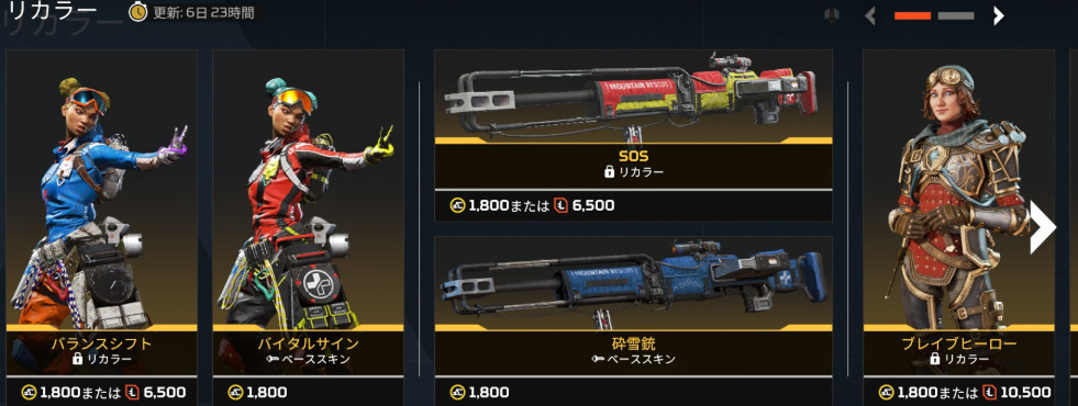 ストア情報【APEX】10.22ストア更新 リカラー&チェインオファー 2025年10月23日 2025年10月23日最新記事 【APEX】マッチメイキングのテストが行われます! マスタープレイヤー以上はダイヤモンドプレイヤーおよびプレデタープレイヤーとしかマッチメイキングできません シーズン25と26のマッチメイキングの分析も公式から発表! 【APEX】10.22ストア更新 リカラー&チェインオファー 【APEX】シーズン27で、ついに音問題(足音)が解決か!!オーディオアップデート 【APEX】ピック率ワースト3位のヴァルキリーに強化が入る可能性あり?! 【ALGS LCQ Final】RIDDLEが最後に勝ち切った!RIDDLEとRIGが札幌行きを決めました! 10.22ストア更新 リカラー&チェインオファー◆リカラー更新◆チェインオファー Facebook Twitter