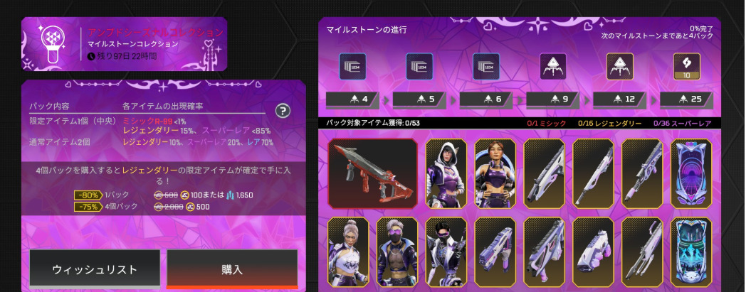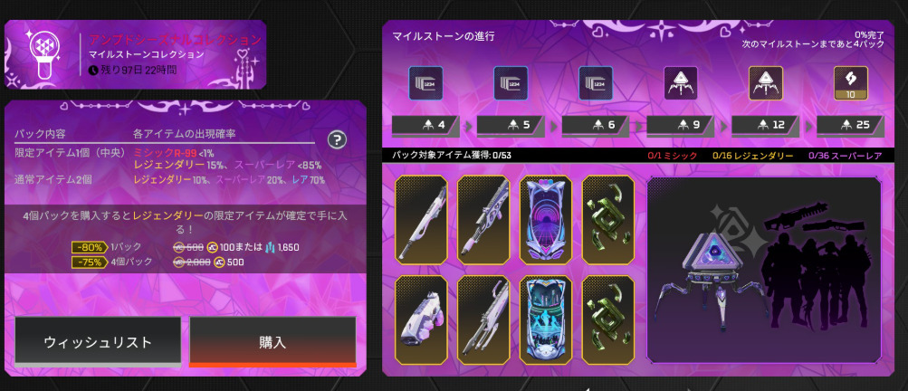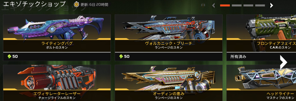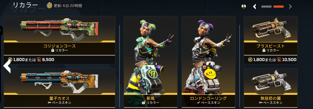 ストア情報【APEX】シーズン27開幕!11.5ストアアップデート 2025年11月5日 2025年11月5日最新記事 【APEX】スキン再販情報 【APEX】ALGSバッジ&トラッカー(年明け1月の札幌の時期に登場か?) 【APEX】シーズン27開幕!11.5ストアアップデート 【APEX】11.19から無料でもらえるKATANAのトラッカーはかっこいい(めっちゃ煽るが) 【APEX】シーズン27パッチノート公開!! シーズン27開幕!11.5ストアアップデート◆アンプドシーズナルコレクション◆アンプド単品売り◆リカラー◆セレクト◆臨戦態勢◆レトロパック◆エキゾチック Facebook Twitter