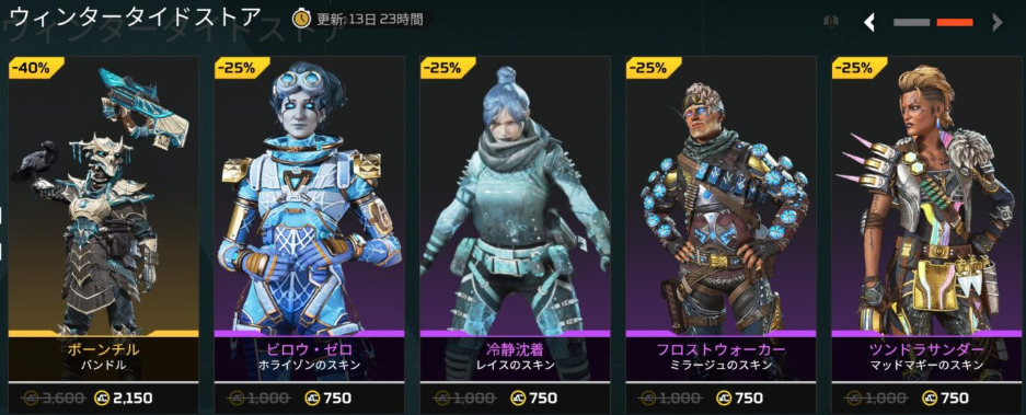 ストア情報【APEX】12.10ストアアップデート 2025年12月10日 2025年12月10日最新記事 【APEX】12.10ストアアップデート 【APEX】12.17ストア情報レトロパックストア(スパレジェなど) 【APEX】2025年12月 アンチチートデータの報告 【APEX】12.10リカラー 【APEX】17日開始のSP2でクリプト強化実装か(競技シーンにも影響?) 12.10ストアアップデート◆ウインタータイドストア◆リカラー Facebook Twitter