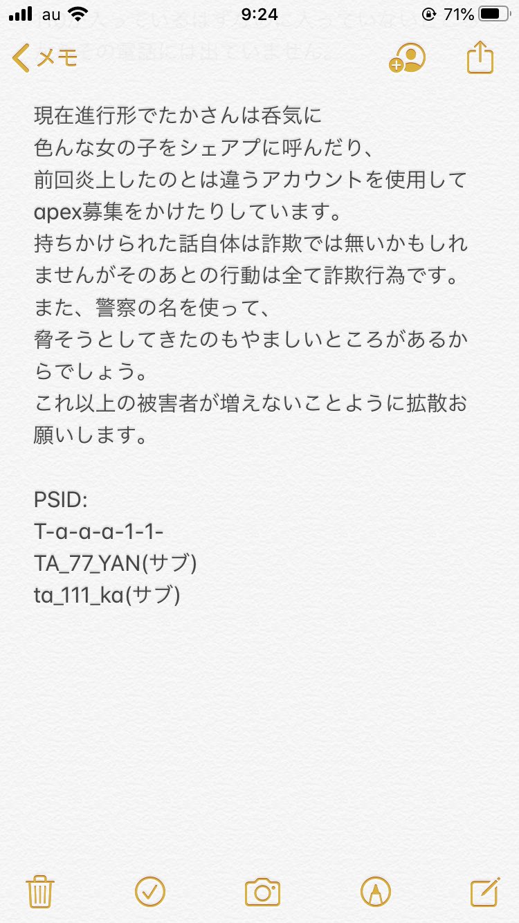 これ以上の被害者を増やさないためにも拡散お願い致します。apexの現プレデター