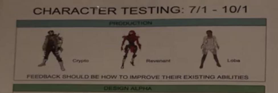 2019年10月にリークされたこの画像、実はこれAPEX開発者達が使用した「キャラクターの開発テストスケジュール」が記載された紙となっている。