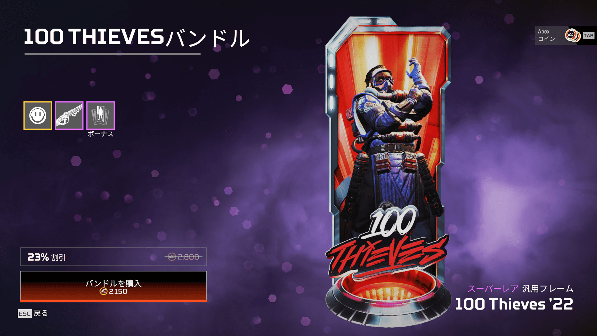 - フレーム「100 Thieves '22」