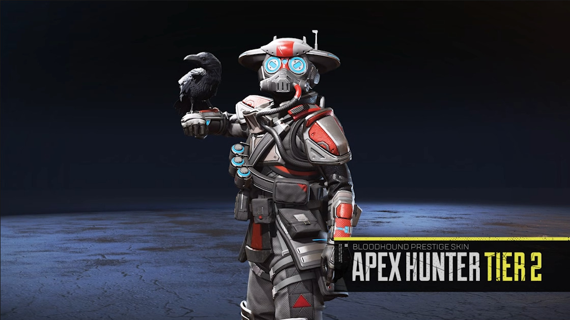 例:ブラッドハウンドのティア1プレステージスキンをアンロックしたとします。ブラッドハウンドのティア2プレステージスキンをアンロックするには、「ブラッドハウンドで30,000ダメージを与える」というチャレンジをクリアしなければなりません。このチャレンジは、ブラッドハウンドのティア1プレステージスキンをアンロックした瞬間から挑戦可能です。ブラッドハウンドのティア2プレステージスキンをアンロックすると、ブラッドハウンドのティア3プレステージスキンを目標とするチャレンジに挑戦可能です。チャレンジ内容は「ブラッドハウンドで追加ダメージを70,000ポイント与える」となっています。ブラッドハウンドのティア3プレステージスキンのチャレンジをクリアすると、ブラッドハウンドのティア3プレステージスキンをアンロックできます。スキンは見た目がカッコイイだけでなく、「貫くプラズマ」という特殊なフィニッシャーも含まれます。