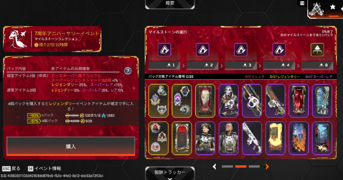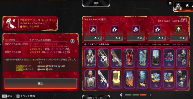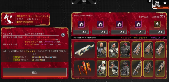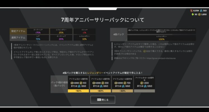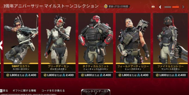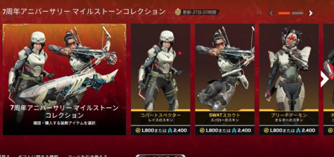 ストア情報最新情報【APEX】7周年アニバーサリーイベントが開催!! 2026年2月11日 2026年2月11日最新記事 【APEX】オビ・エドラシムさんピック率最下位に帰還!! 【APEX】7周年アニバーサリーストアが開催! 【APEX】7周年アニバーサリーイベントが開催!! 【APEX】ホライゾンがサイレント強化 【APEX】シーズン28進化スキンパック 本日から7周年アニバーサリーイベントがスタートしました!◆マイルストーンイベントが開催 ◆スキンの単品売りもあります。 Facebook Twitter