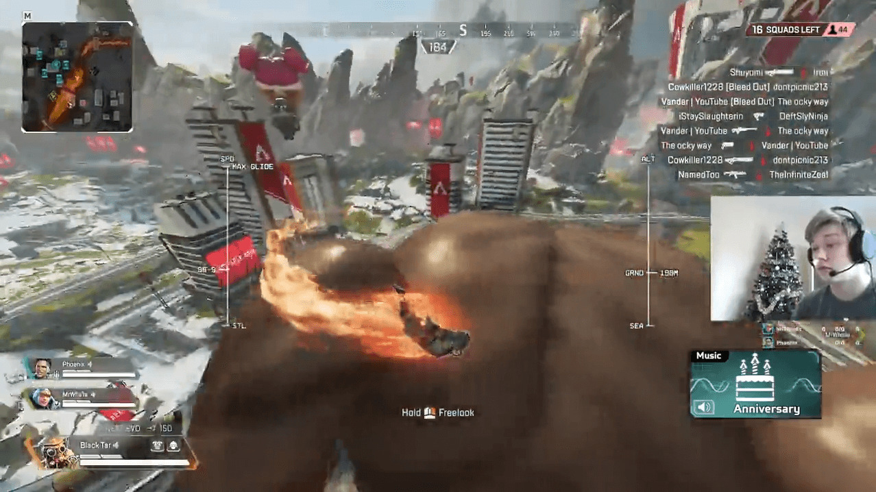 【APEXおもしろバグ】シーズン16で追加された「レジェンド風船」の上に一生浮かぶことができるバグが発見されるwww