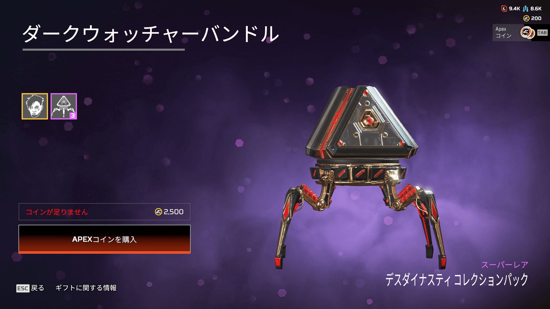 - 「シーズン限定」→「イベントオファー」から「ヘルフォージャーバンドル」と「ダークウォッチャーバンドル」を購入すると、900APEXコイン分お得になります。