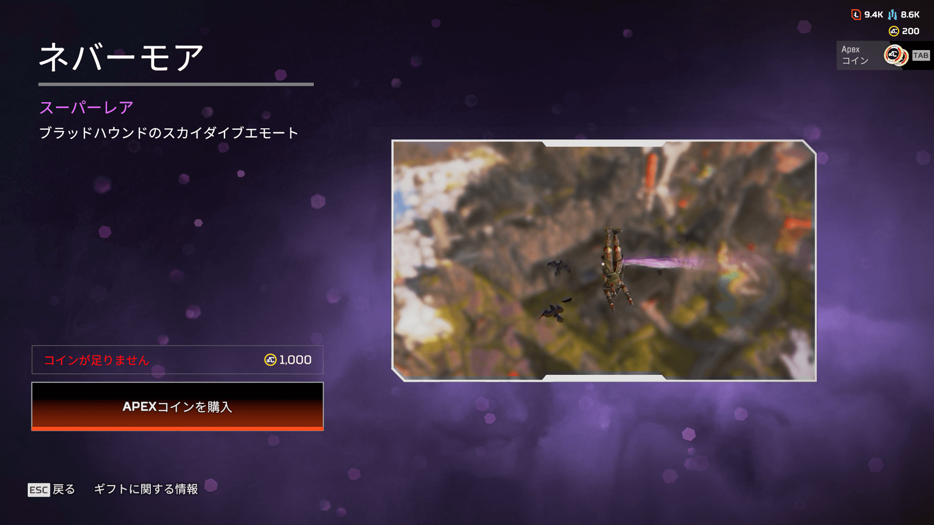 ブラッドハウンドのスカイダイビングエモート「ネバーモア」