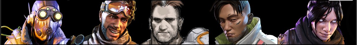 クリプト、レヴナント、ローバ、ランパート、フォーク、ブリスク、ダウンフォールの名前が確認できる。