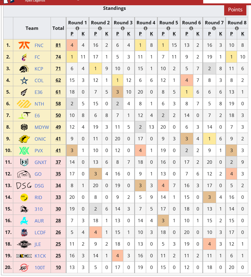 【APEX世界大会】ALGS Year 3 チャンピオンシップ Day3の結果→敗者復活戦で「Fnatic」が1位突破