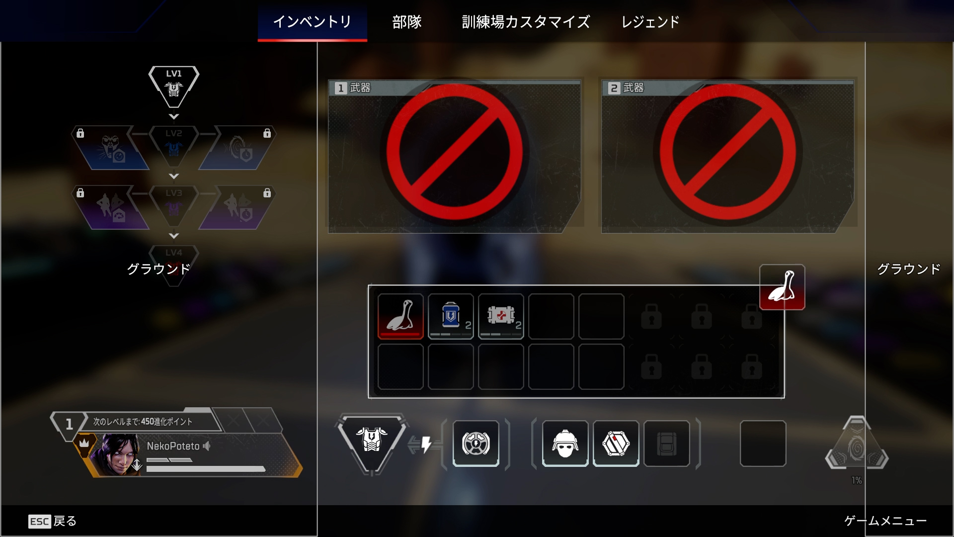 スポーンした場所の後ろにあるネッシーを武器を拾うボタンで回収し、レイスのアルティメット「ポータル」の中に投げ入れると、麻雀の牌のようなアイテムが反対側のポータルから出てきます。