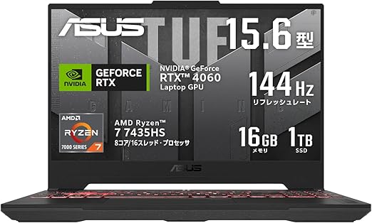 ゲーミングノートPC 15.6型 RTX 4060 Ryzen 7 7435HS メモリ16GB SSD1TB リフレッシュレート144Hz RGB イルミネートキーボード Windows 11が11%OFFで販売中!