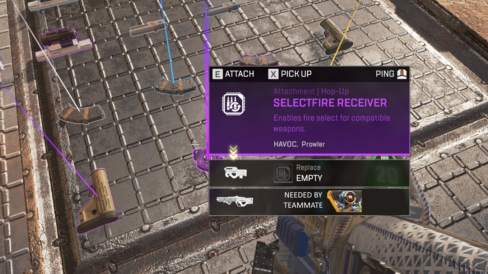 落ちてるアタッチメントにチームメイトが必要かどうかが見えると良いよね