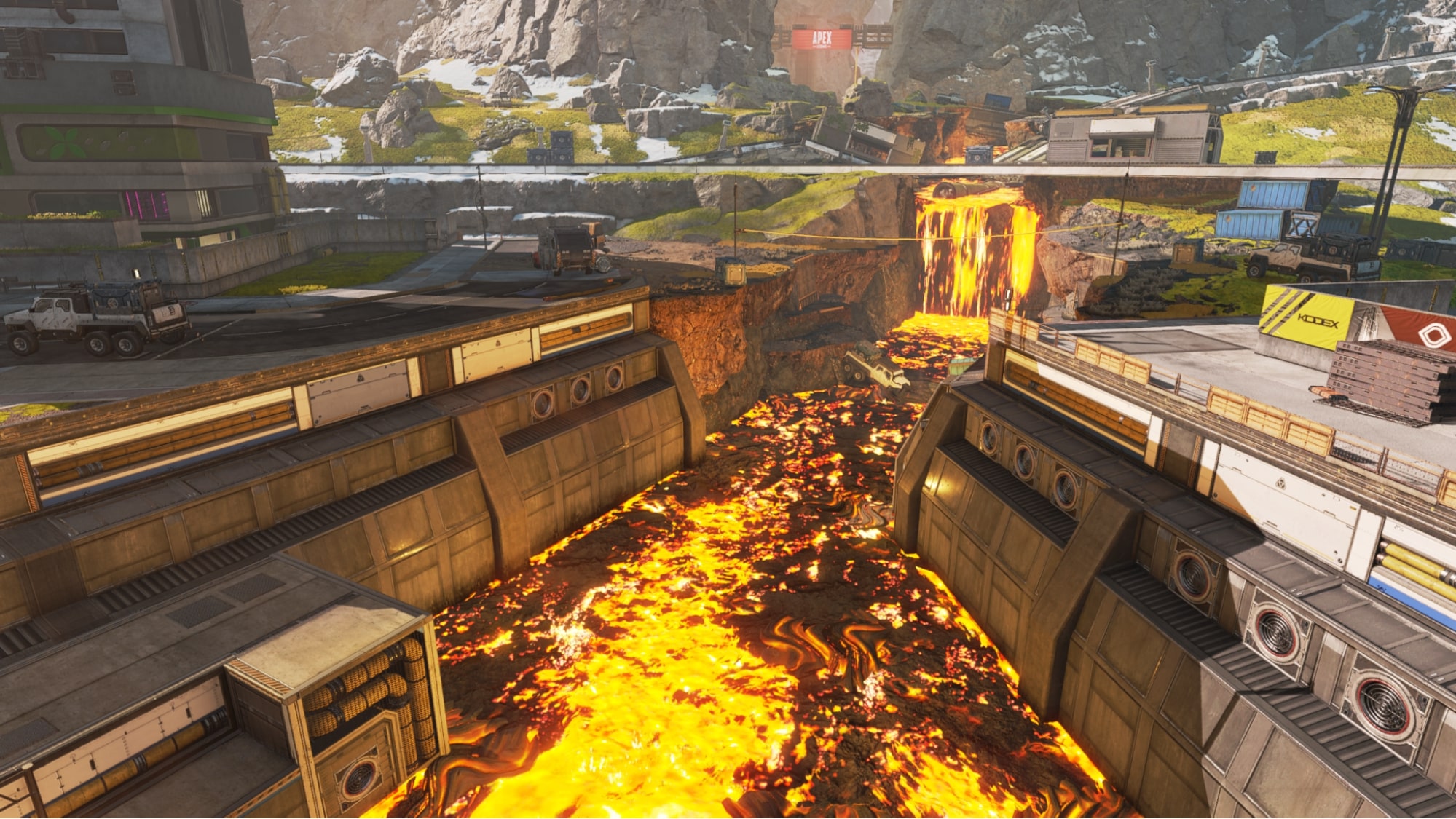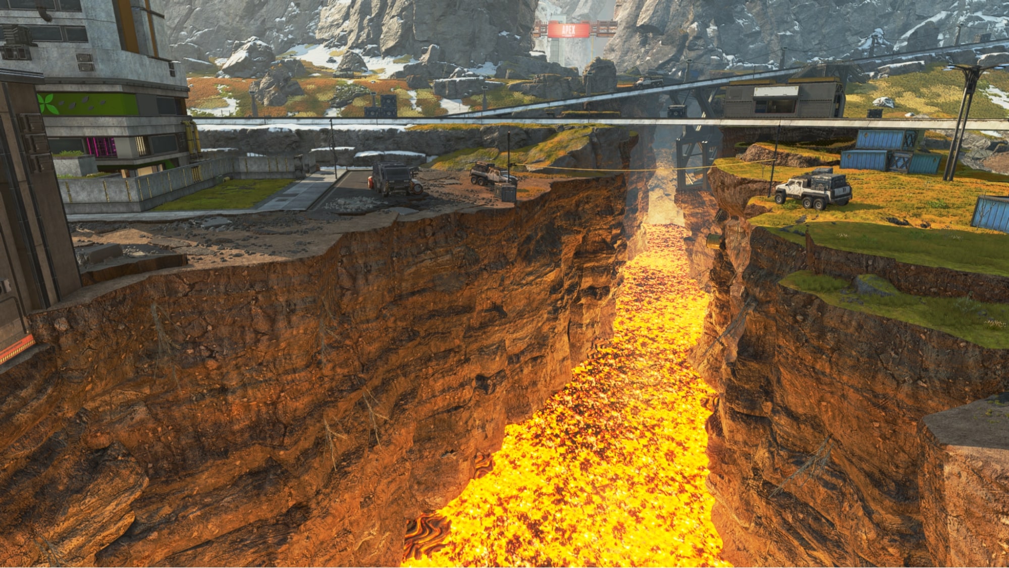 このシーズンでは、ワールズエッジの移動システムである「垂直上昇気流」を完全に削除しています。その分、溶岩の床を高くして歩けるようにしています。ただし熱いので注意してください。