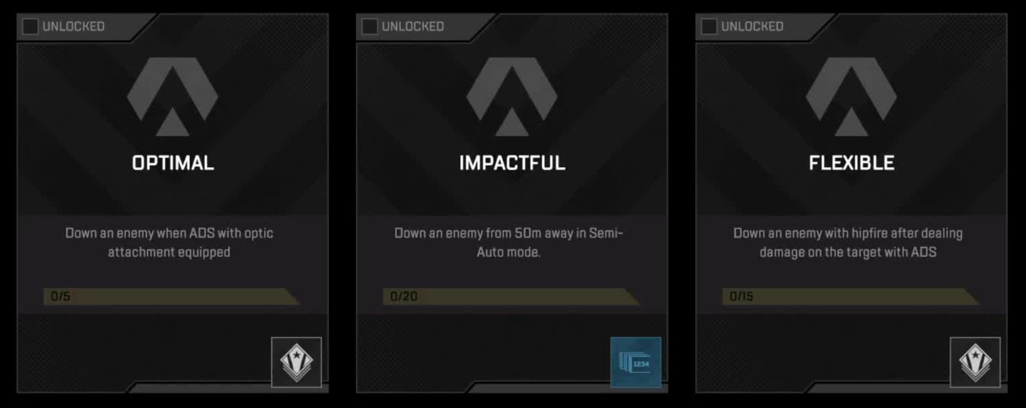 各武器マスタリートラックには、武器固有のバッジや、パフォーマンストラッカー、レジェンダリー武器マスタリーバナーフレーム、各武器のレジェンダリースキンがあります。