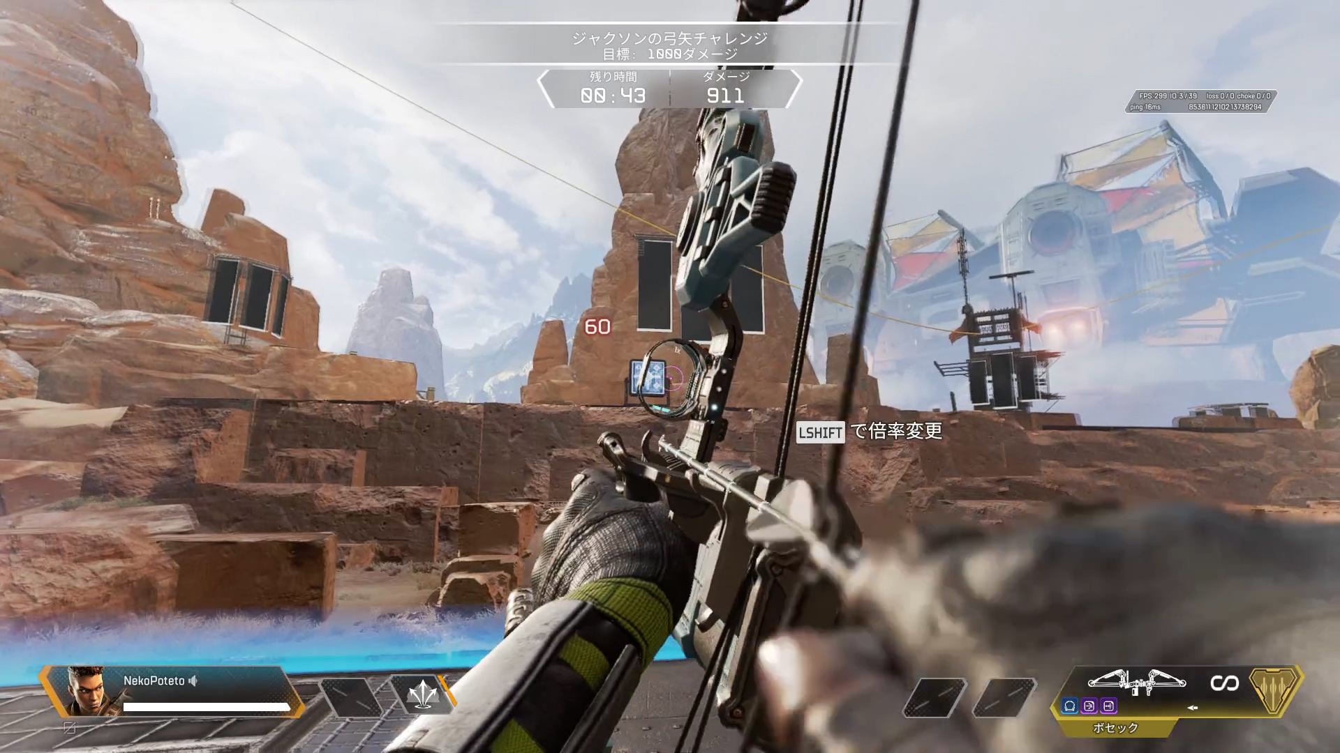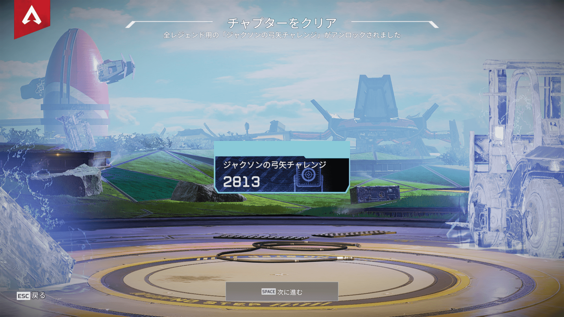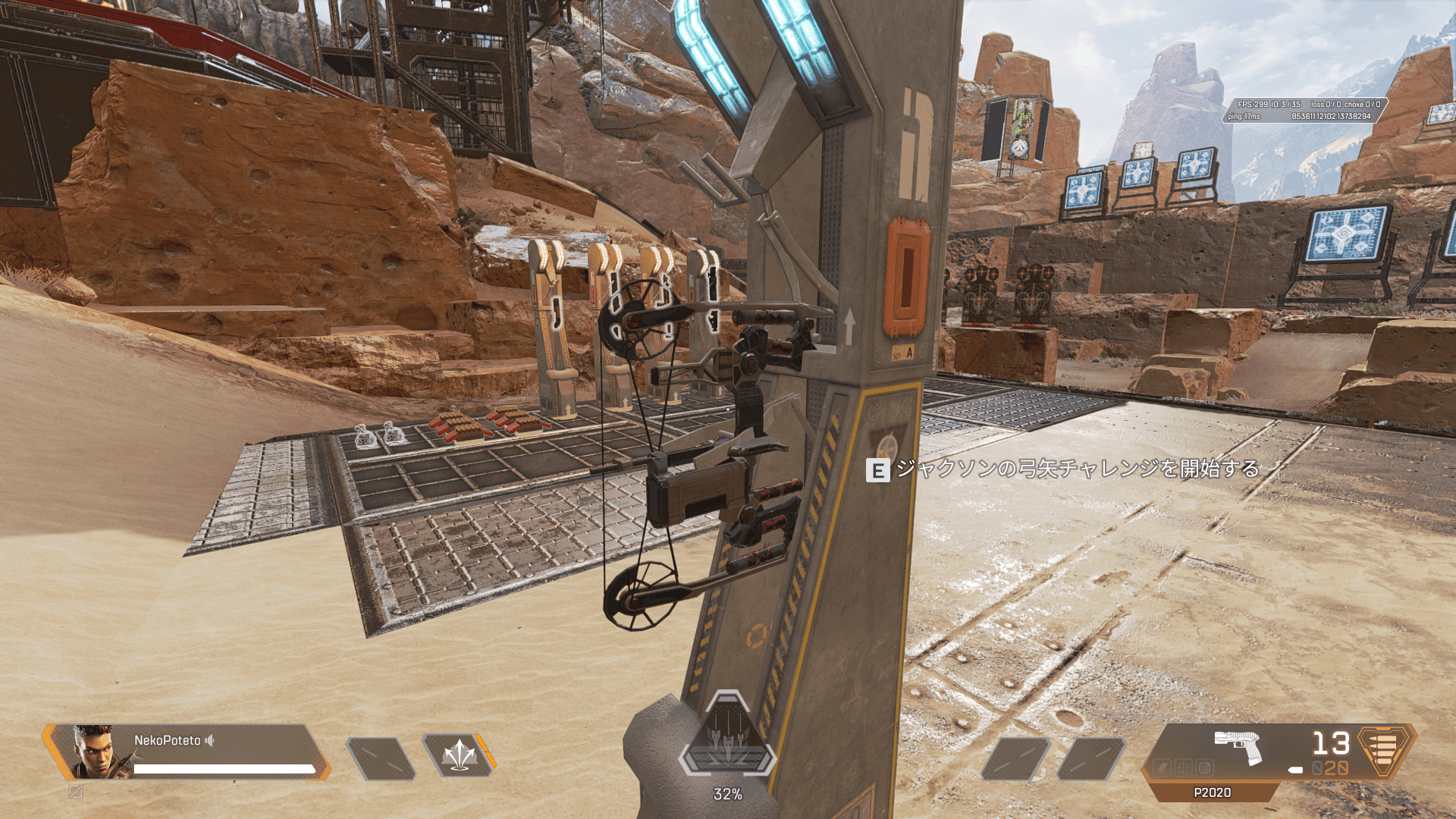 レジェンドをバンガロールに変更し、画像の場所へ行くと「ジャクソンの弓矢チャレンジ」を開始することができます。
