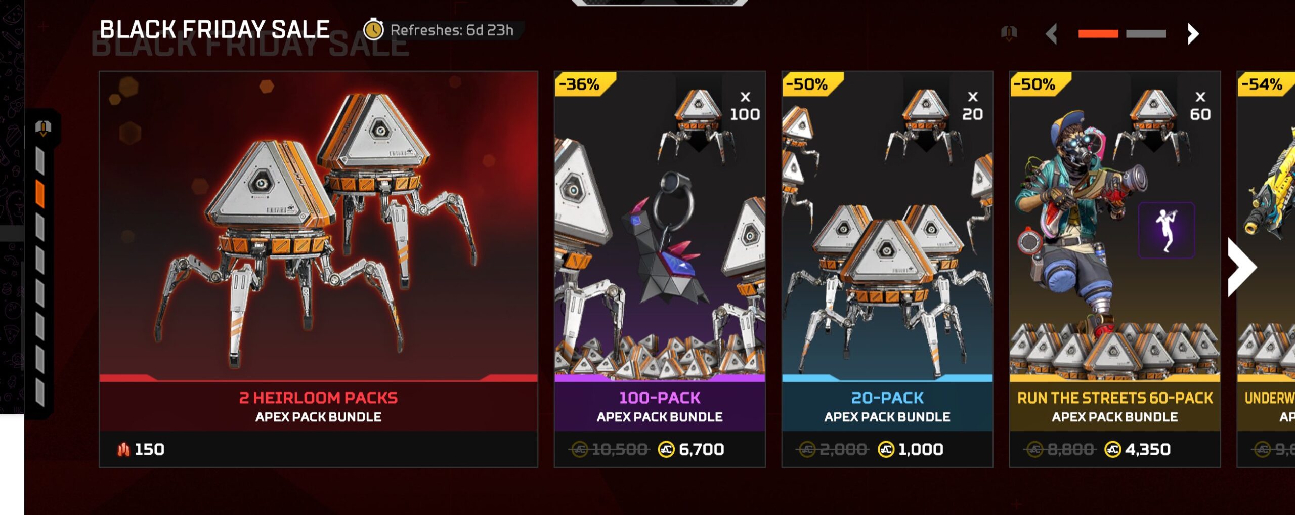 スキンやAPEXパックなどが割引価格で販売!12月3日まで!
