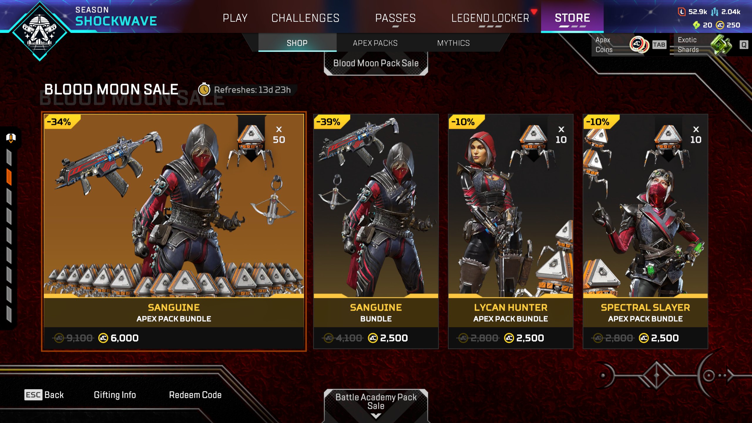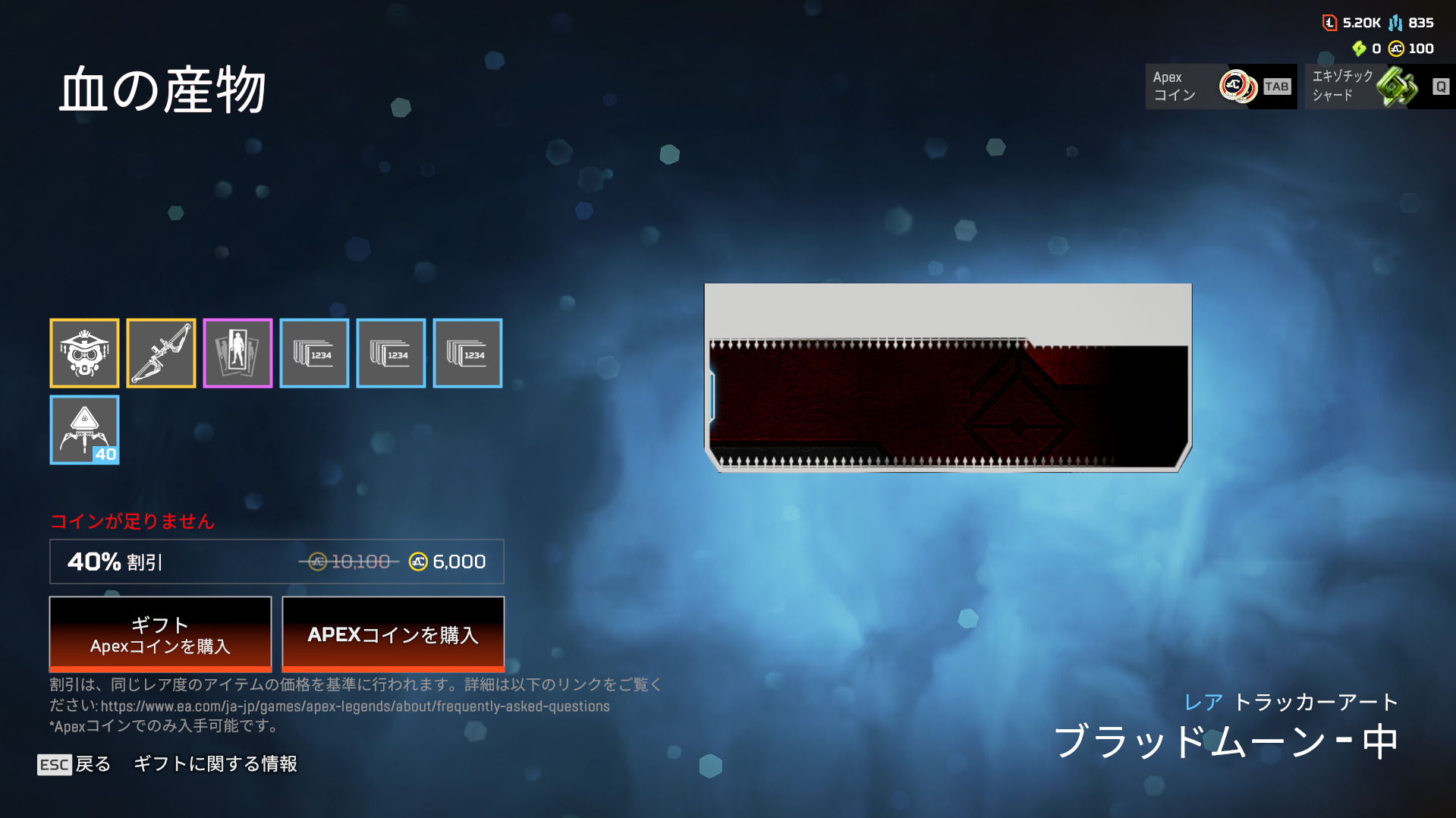 ストア情報【APEX】ブラッドムーンスキンがストアに登場!! 2024年9月4日 2024年9月4日最新記事 【APEX】スーパーレジェンドパックが11月26日に登場!ブラックフライデーストア! 【APEX】覚醒コレクションイベント/リカラー11.12ストア情報(リーク) 【APEX】緊急修正対応が行われました(サーバー側) 【APEX】レイスのエターナルライフスキンが11.26に再販 【APEX】シーズン27開始で アクティブユーザー20万人/DAY回復 【APEX】ブラッドムーンスキンがストアに登場!!ブラッドムーンスキンがストアに登場しました。ブラッドハウンド オルター ボセック フレーム トラッカー過去のブラッドスキンも再販画像引用: HYPERMYST(@HYPERMYSTx) Facebook Twitter