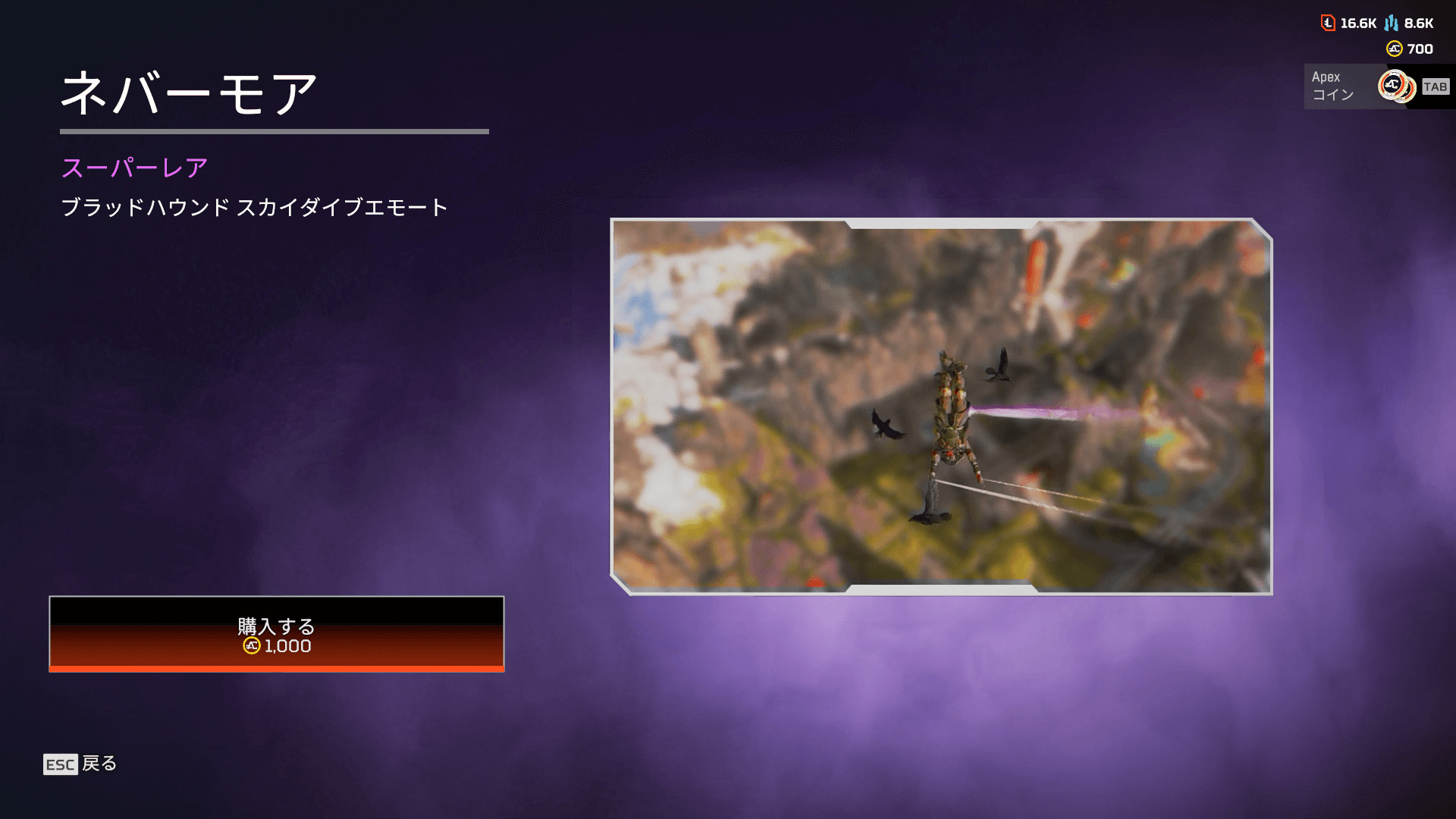 ブラッドハウンドのスカイダイブエモート「ネバーモア」