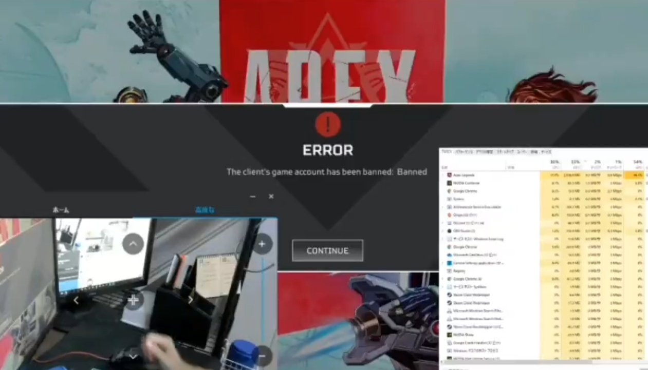 【APEX】日本のプロゲーマーがチーターと疑われる→チートを使っていないと釈明する配信でBANされる