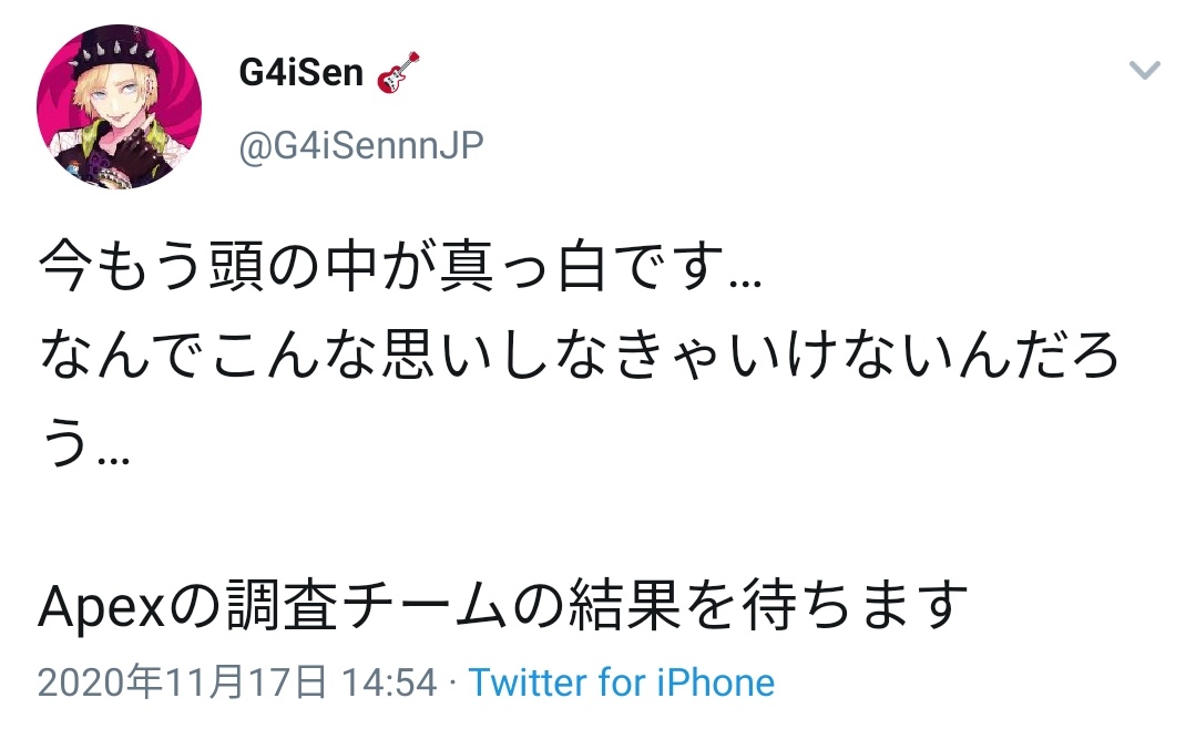 『G4iSen氏はチートを使用していない』等の回答は出来かねますのでご理解いただきたいと存じます。— SunSister (@SunSister_net) November 17, 2020