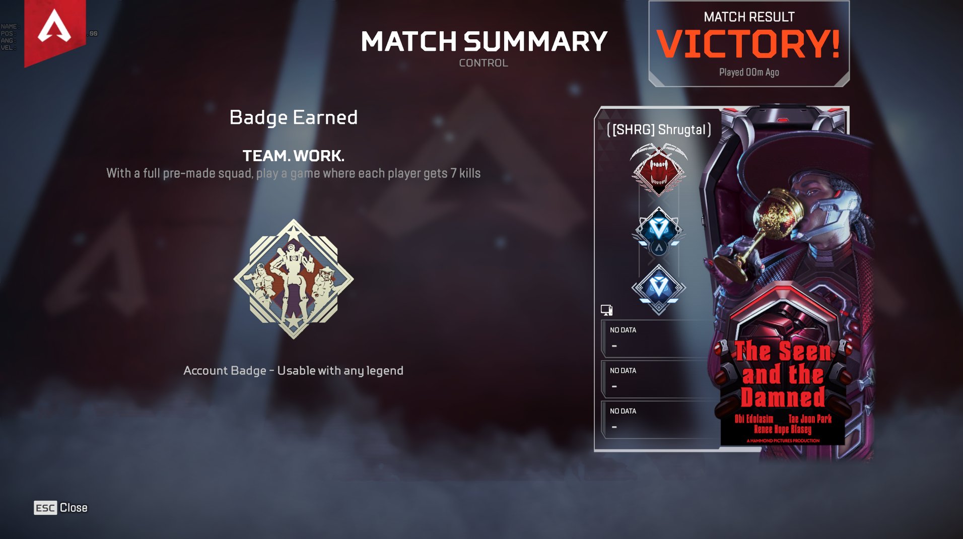 【APEXバグ】新期間限定イベント「コントロール」にて『チームワークバッジ』が獲得できてしまうバグが発生
