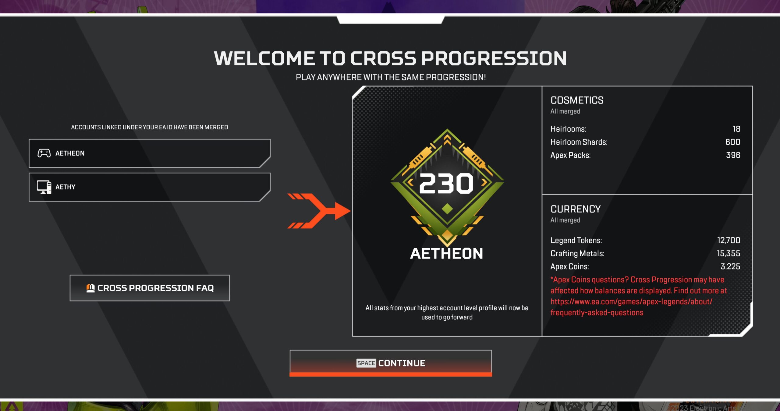 As a reminder, Cross Progression will be rolling out to @PlayApex in waves over the coming weeks. Please do not try to link/unlink your accounts to speed up the process, as that will not impact when you receive the cross-progression prompt.