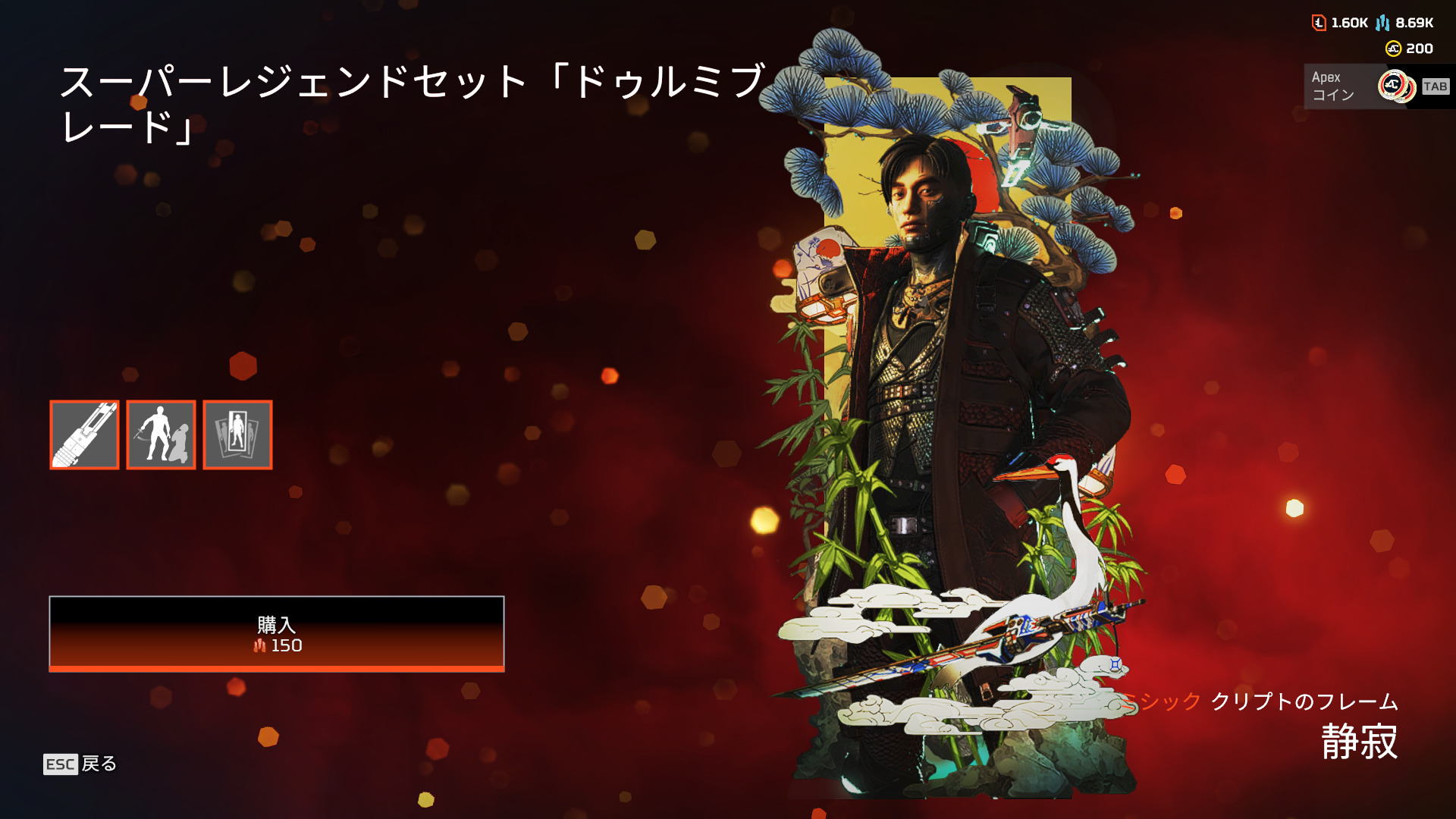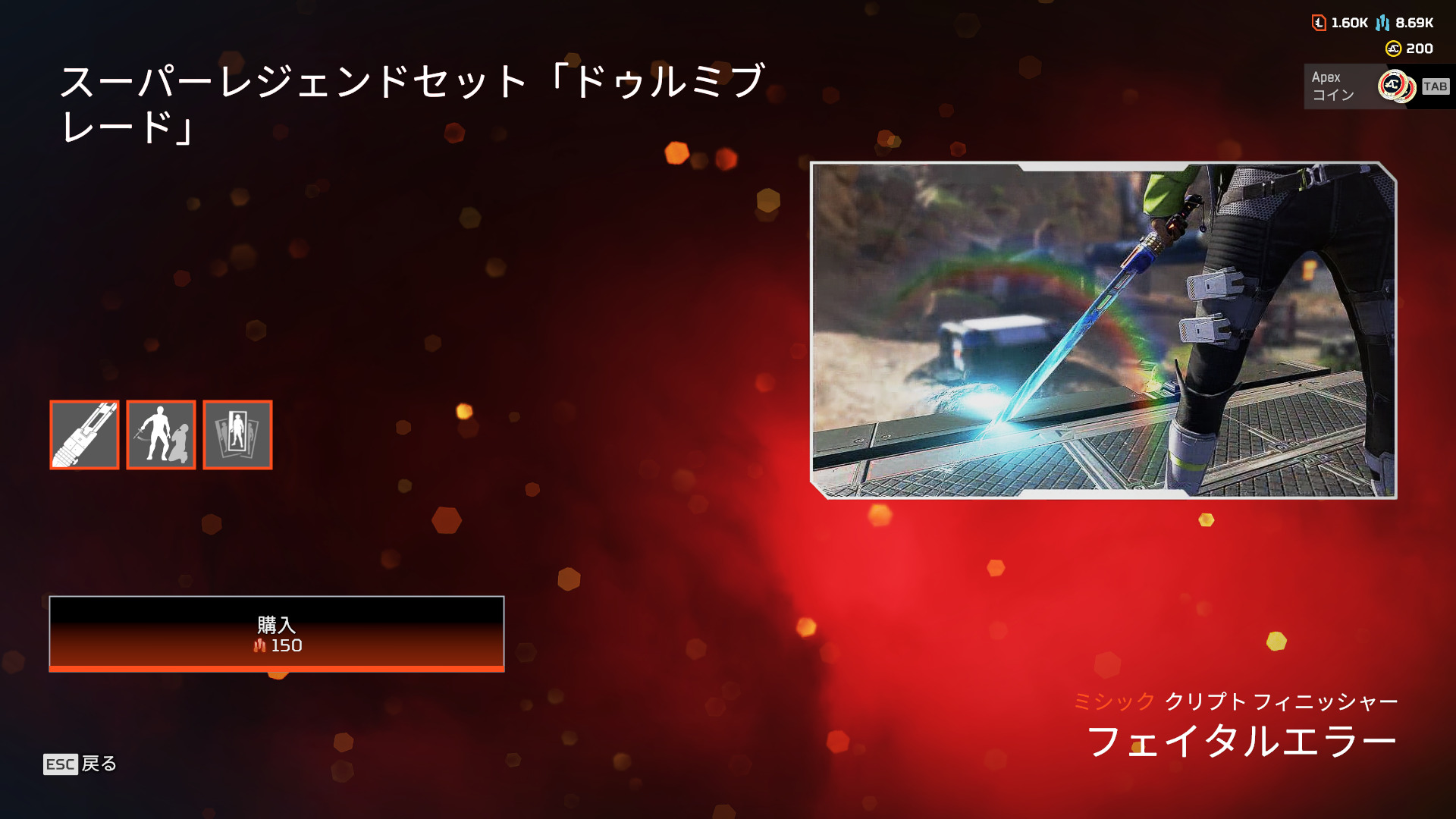 エーペックスのゲーム内「ミシック」タブに突如クリプトのスーパーレジェンド-ドゥルミブレードが追加されました。