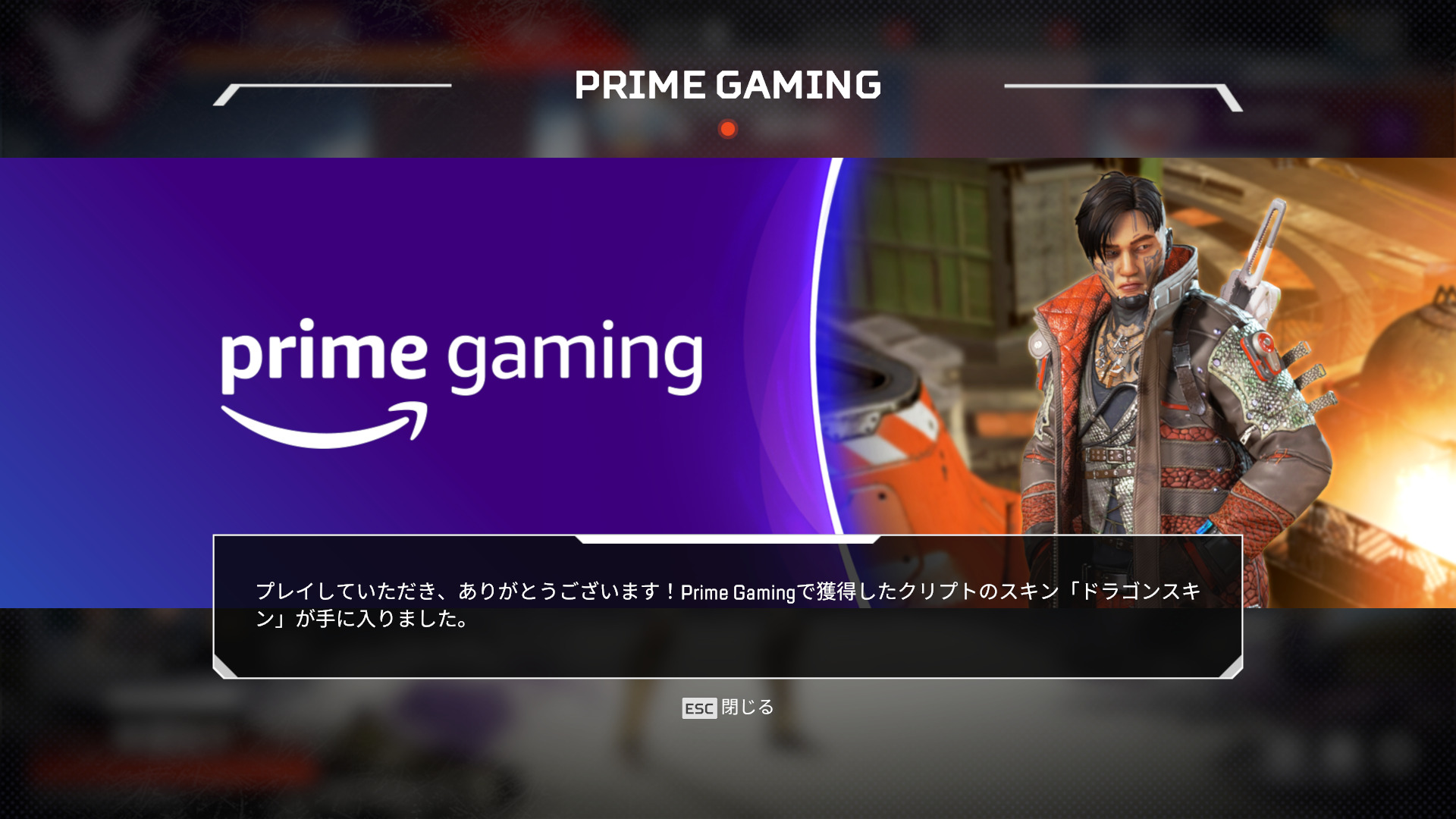 「クリプト」のTwitch Prime Gaming会員限定スキン「ドラゴンスキン」が新たに登場しました。