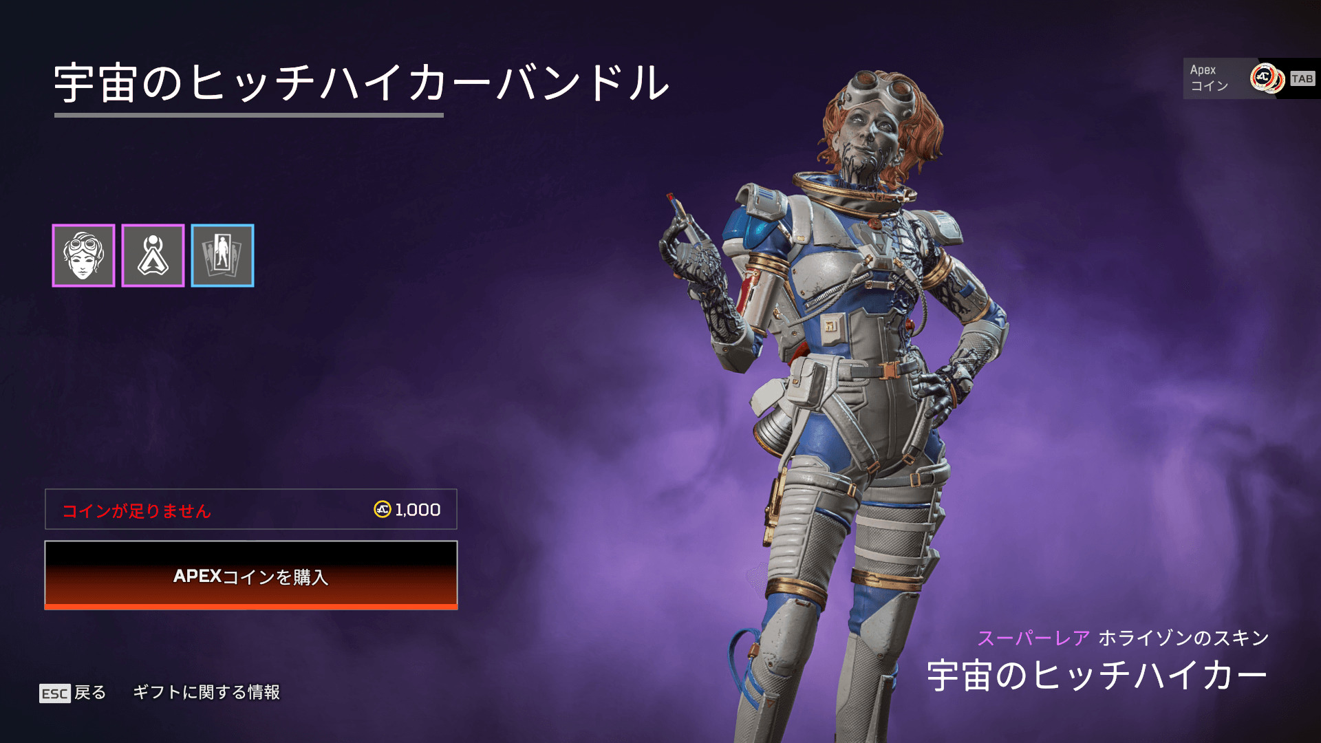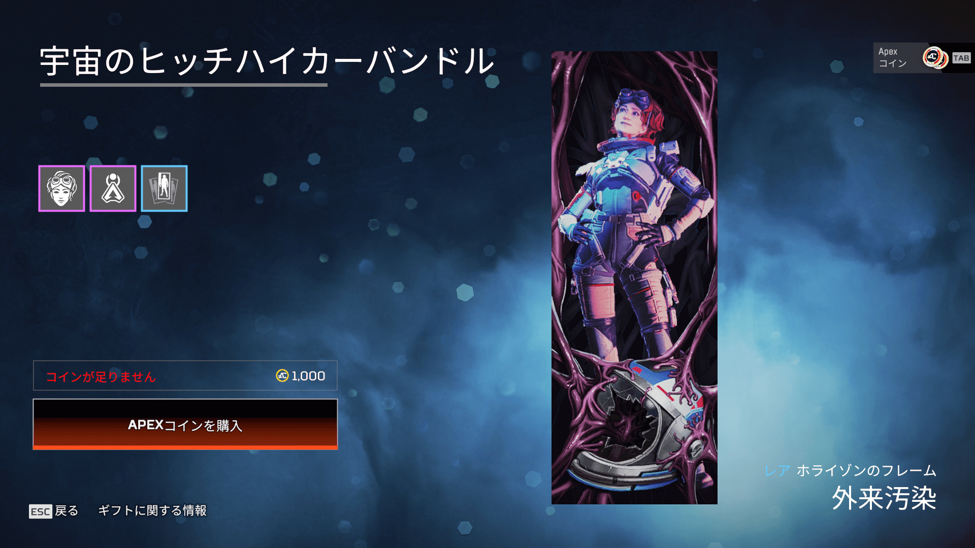 - ホライゾンのスキン「宇宙のヒッチハイカー」