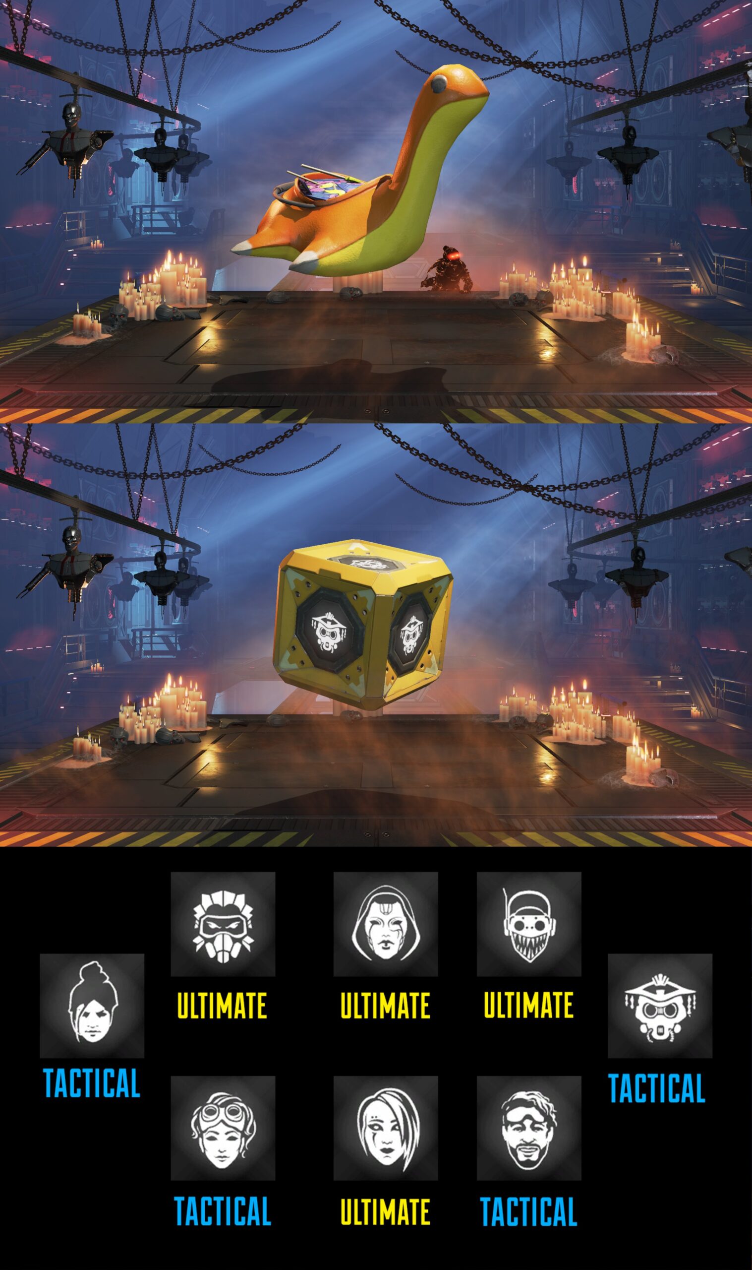 - コピーキャット(ホライゾン、レイス、ミラージュ、ブラッドハウンド、オクタン、アッシュ、コースティック、カタリストの中から1つアビリティを与えるアイテム)