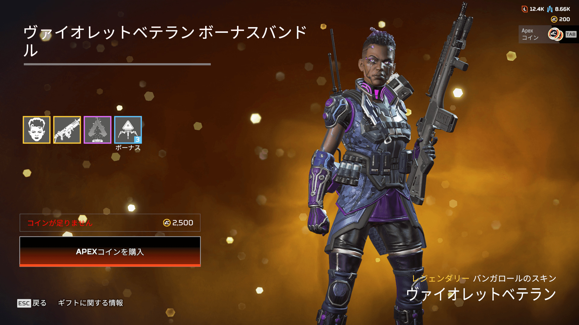 - バンガロールのスキン「ヴァイオレットベテラン」