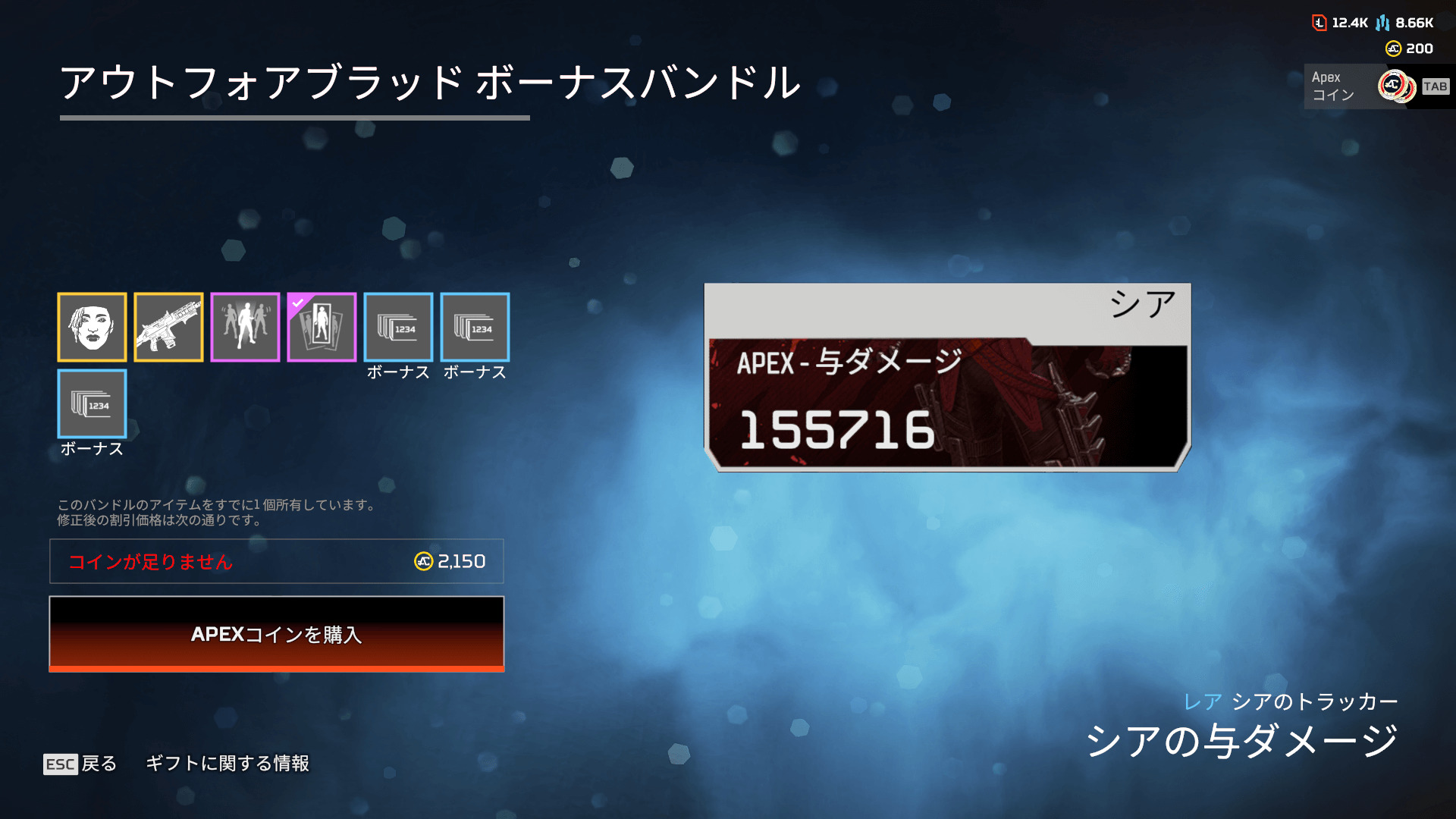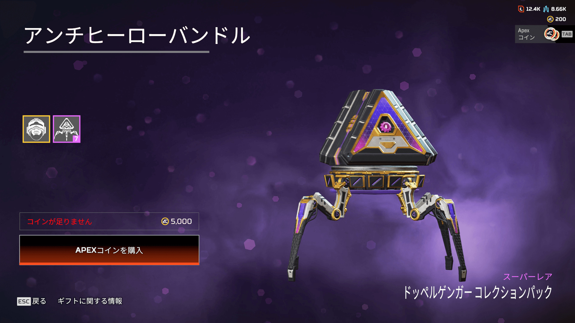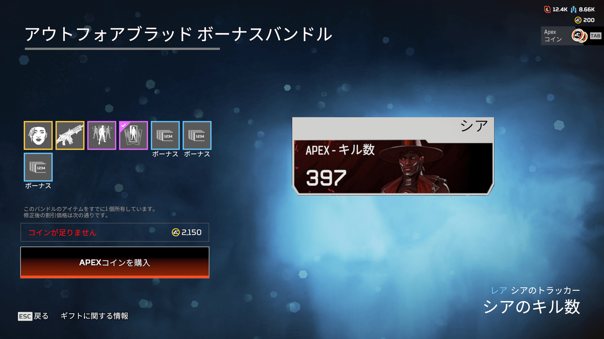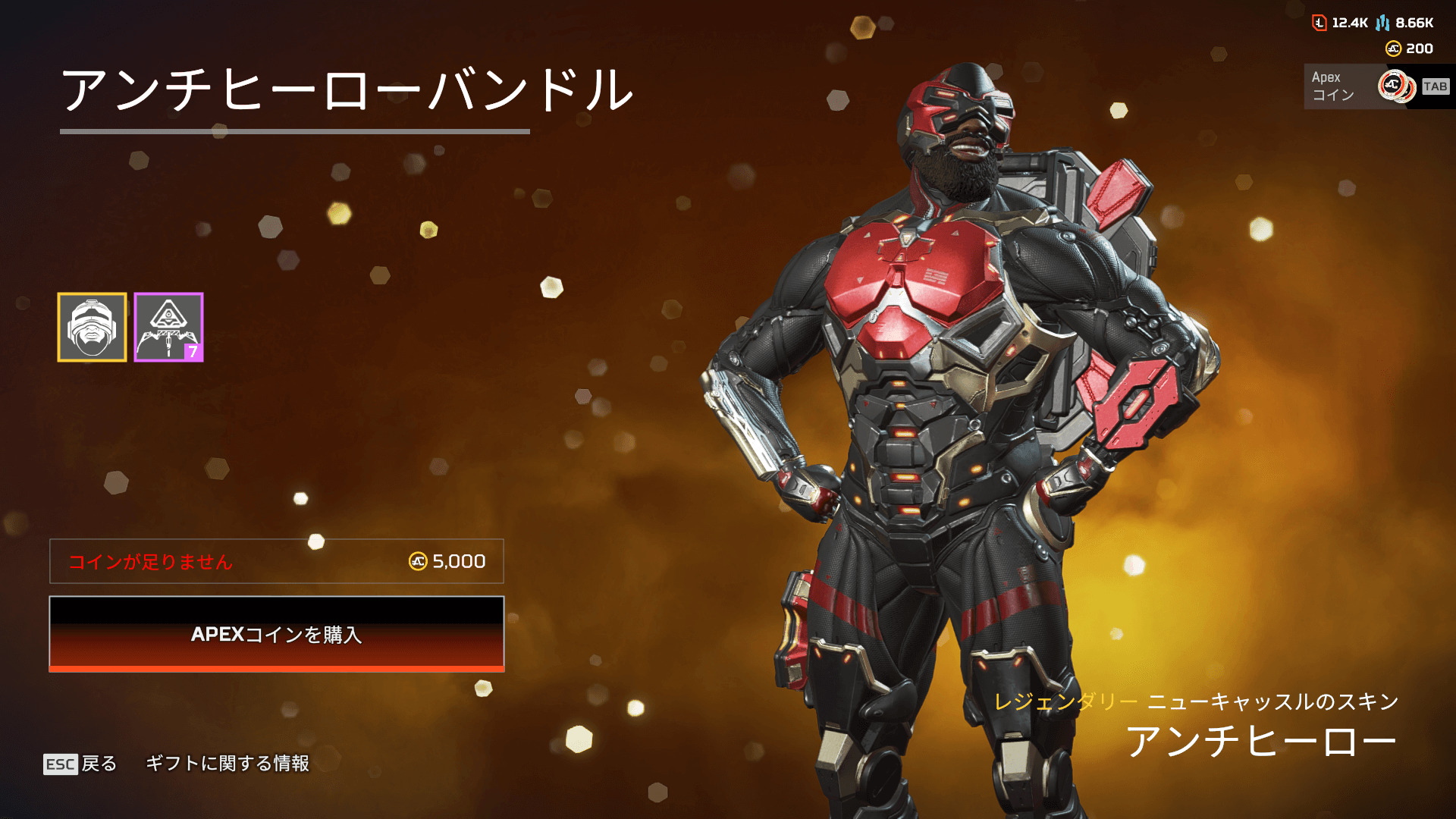 - 「シーズン限定」→「イベントオファー」から「アンチヒーローバンドル」と「アドバンストラッキングバンドル」を購入すると、900APEXコイン分お得になります。
