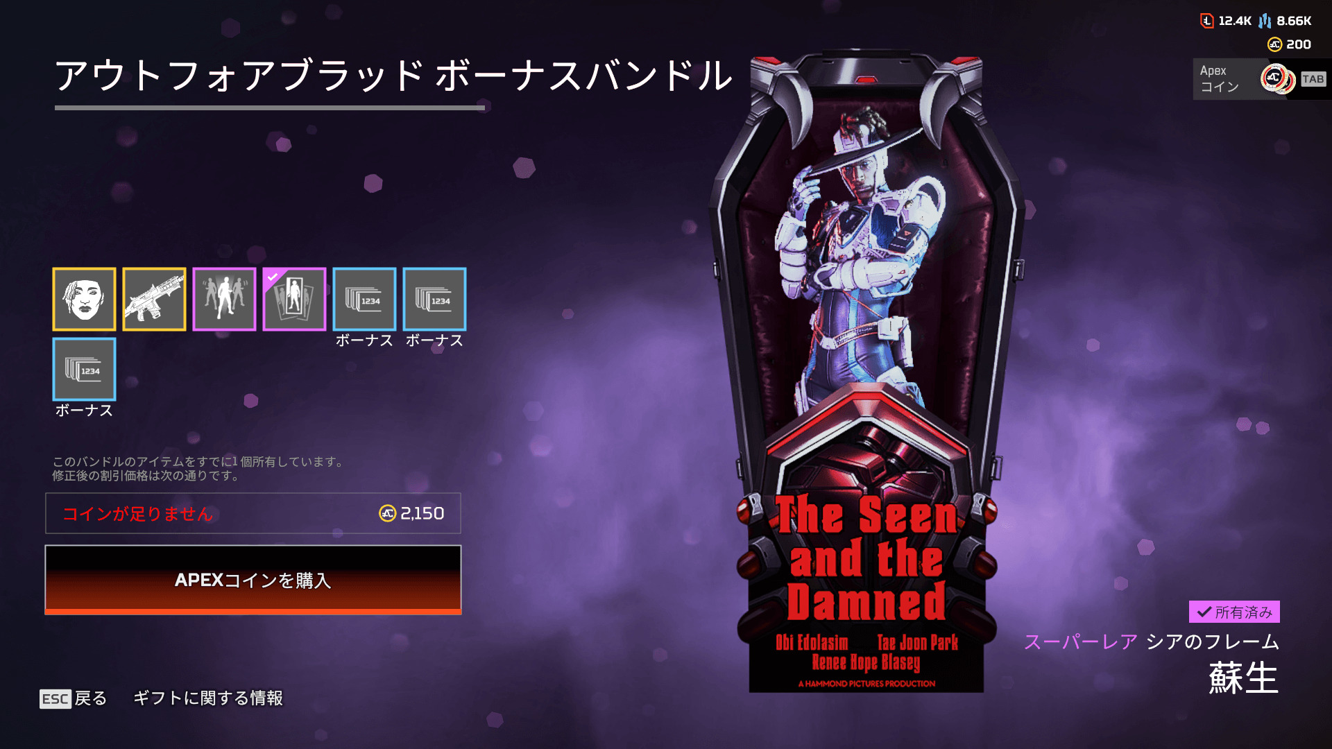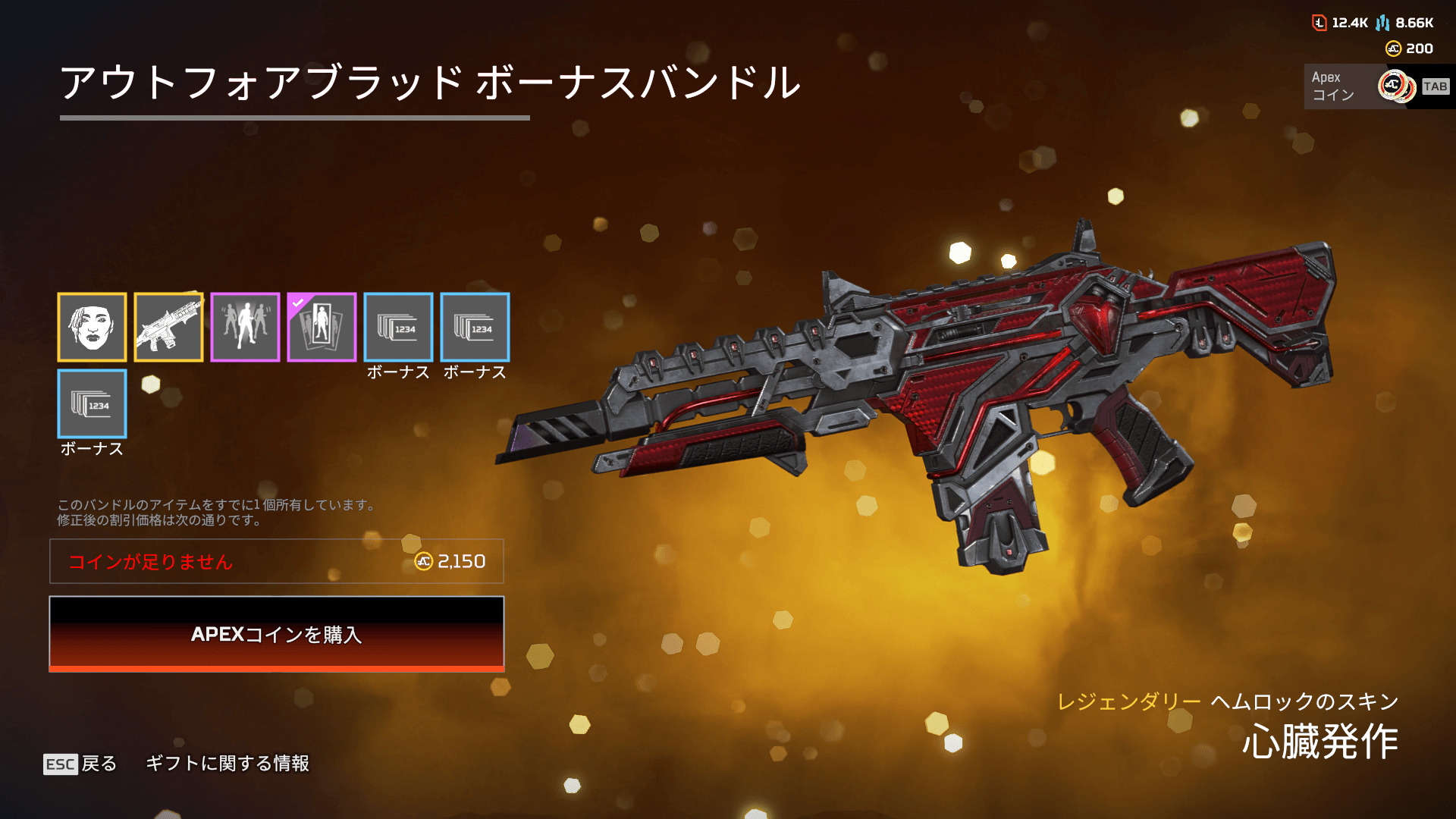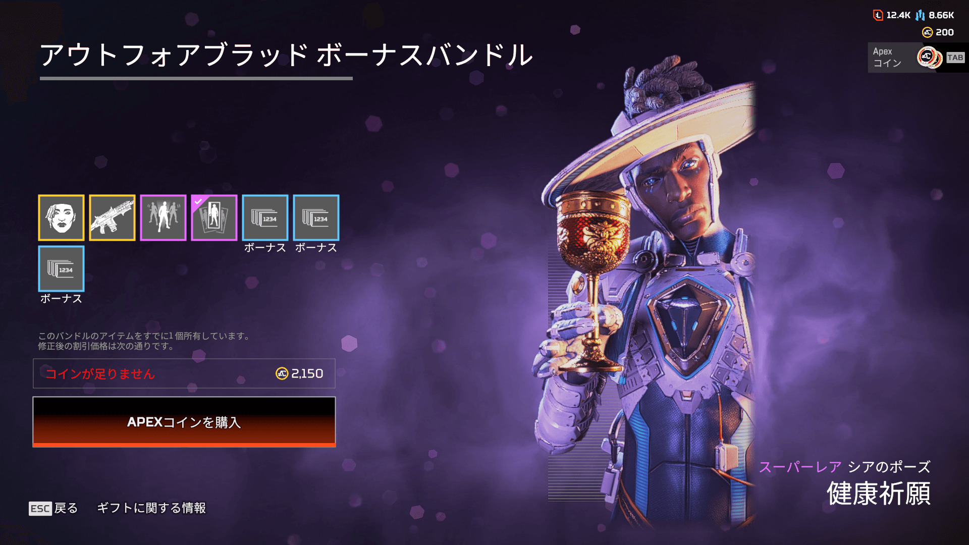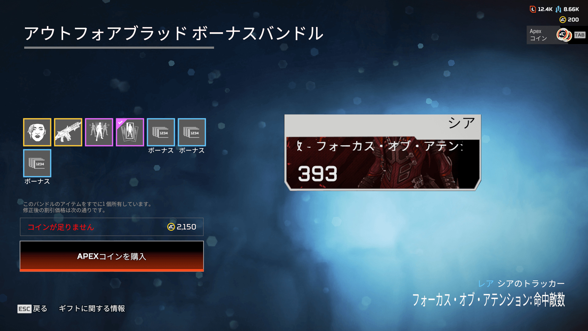 - 「シーズン限定」→「イベントオファー」から「アンチヒーローバンドル」と「アドバンストラッキングバンドル」を購入すると、900APEXコイン分お得になります。