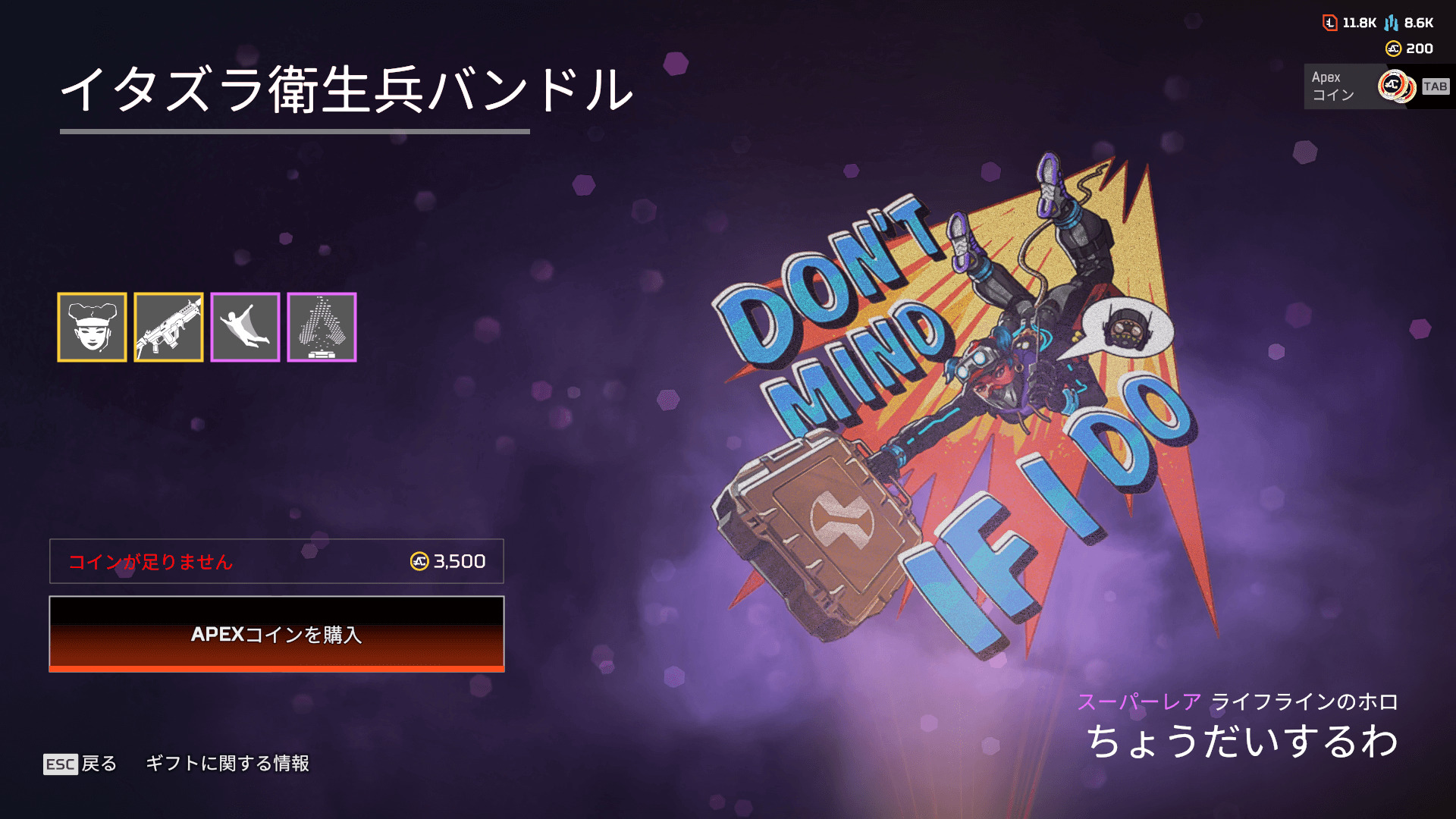 - ライフラインのホロスプレー「ちょうだいするわ」