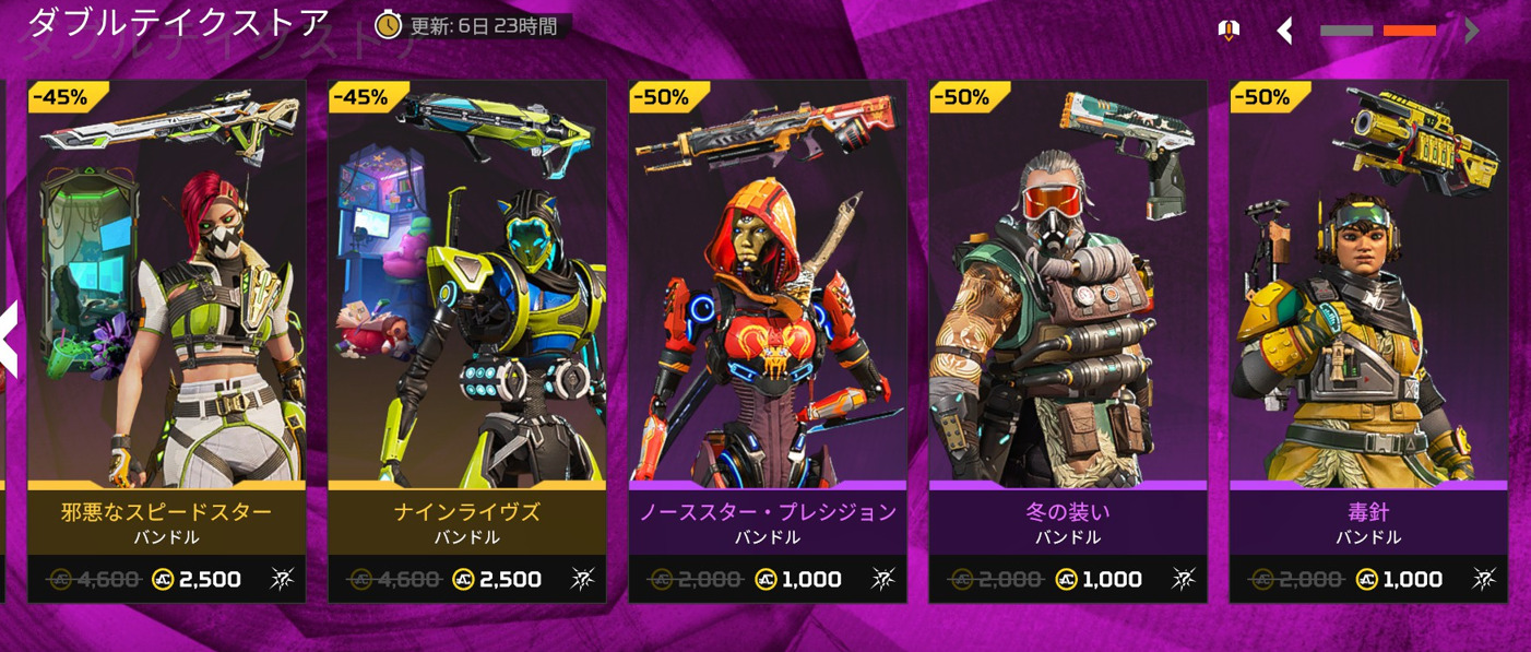 ストア情報 【APEXストア情報】「R-301」と「シア」のレジェンダリー・色違いスキンが登場!【APEXストア情報】「R-301」と「シア」のレジェンダリー・色違いスキンが登場! ストア画面 ストア内容詳細 ※画像が多いのでタップor...