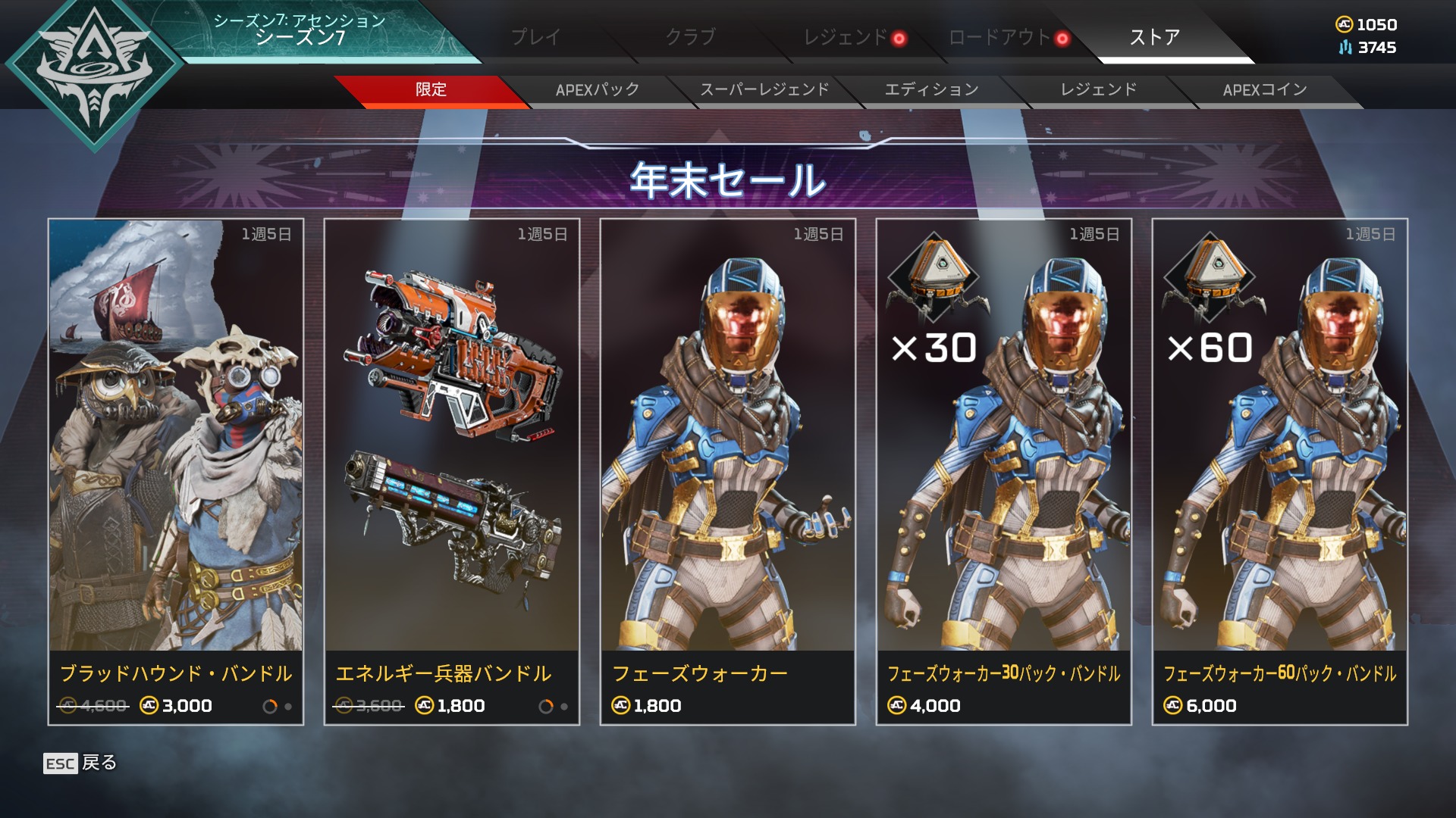 ストア情報最新情報【速報】APEX年末セールが開始!レイスの新スキン「フェーズウォーカー」が3種類の形で販売されてるぞ!! 2020年12月23日 2021年1月4日最新記事 【APEX】緊急修正対応が行われました(サーバー側) 【APEX】レイスのエターナルライフスキンが11.26に再販 【APEX】シーズン27開始で アクティブユーザー20万人/DAY回復 【APEX】ヴァルキリー&ホライゾンが大幅上昇!前シーズン強化のシアが1%割れ(新シーズン27開始後のピックランク) 【APEX】シーズン27、世界大会、シーズン28のスケジュール 【速報】APEX年末セールが開始!レイスの新スキン「フェーズウォーカー」が3種類の形で販売されてるぞ!!年末セール全体画像ブラッドハウンド・バンドル伝説パックバンドルエネルギー兵器バンドル古い習慣バンドルレイス「フェーズウォーカー」フェーズウォーカー30パック・バンドルフェーズウォーカー60パック・バンドル Facebook Twitter