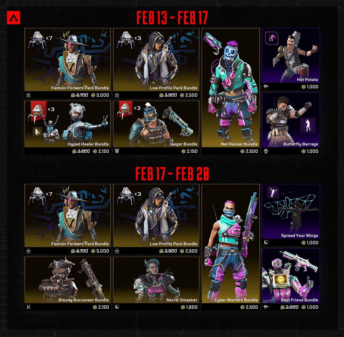 イベント期間中は数々の特別なオファーをお届けする新イベントストアがオープン! 「流行の最先端バンドル」「ソウルレスセントリーバンドル」「ロープロファイルバンドル」などのバンドルが登場します。以下から予定されているオファー内容をチェックしましょう。新イベントストアに加えて、過去のアニバーサリー部隊スキンがお買い得価格になります。さらに、バレンタインデーセールも実施!