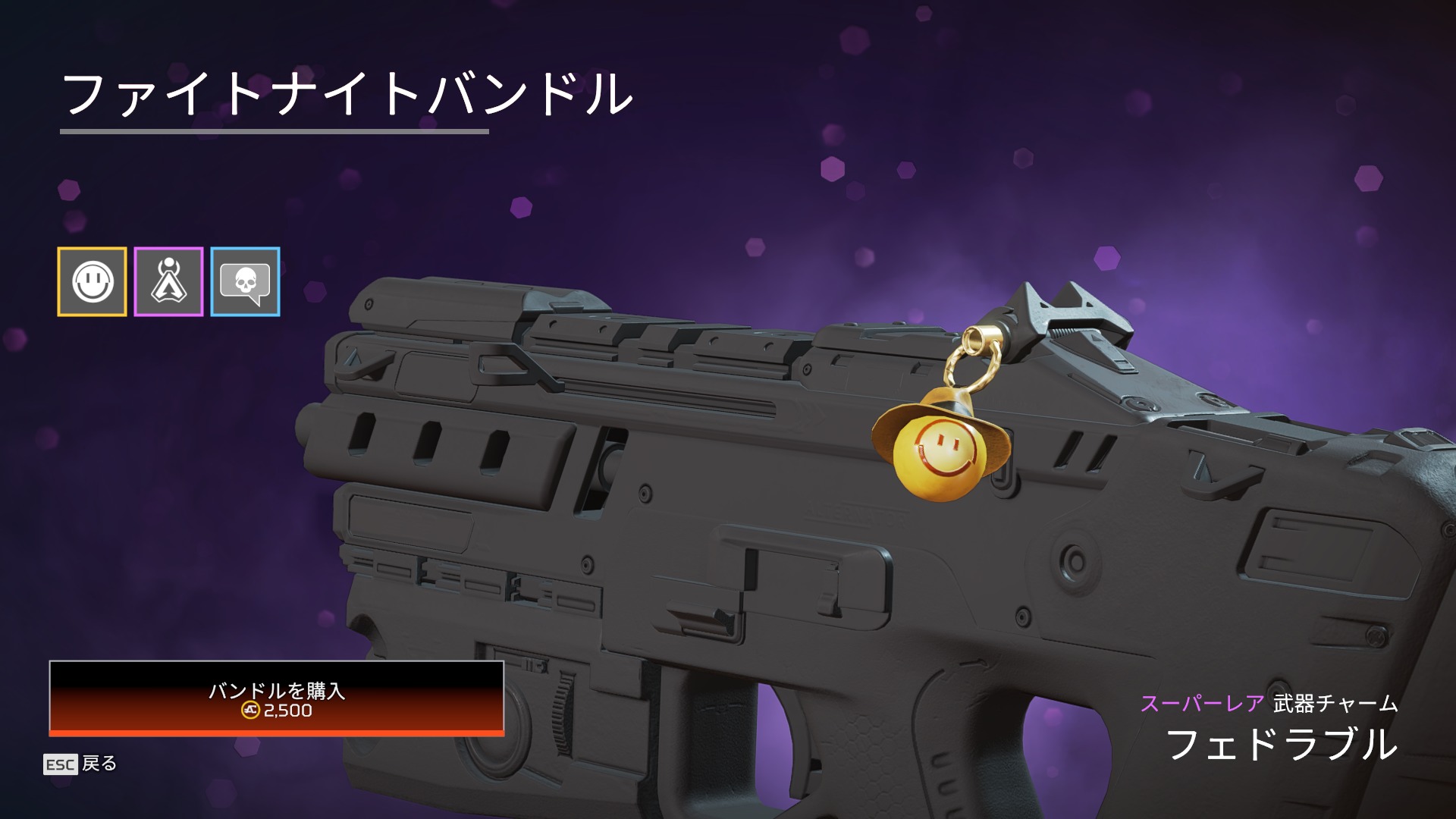 ストア情報【APEX期間限定ストア情報】新イベント「ファイトナイト」の限定スキン情報まとめ 2021年1月6日 2021年1月6日最新記事 【APEX】金レーザーサイト復活(SMG環境?ホライゾンのピック率あがるか?) 【APEX】シーズン27 バトルパス レジェンドと武器のエピックスキン(ローバはもちろん含まれます) 【APEX】シーズン27のヴァルキリーのバトルパスセット(リーク) 【APEX】シーズン27武器スキン情報!!(リーク) 【APEX】シーズン27新イベントスキン情報!(リーク) 【APEX期間限定ストア情報】新イベント「ファイトナイト」の限定スキン情報まとめ【APEX期間限定ストア情報】コレクションイベントパックで入手できる限定アイテム情報まとめはコチラ【APEX期間限定ストア情報】コレクションイベントパックで入手できる限定アイテム情報まとめ2021.1.6【APEX期間限定ストア情報】コレクションイベントパックで入手できる限定アイテム情報まとめ ↓スペシャルオファー(別の限定ストア情報)はコチラにまとめました↓ 【APEX期間限定ストア情報】新イベント「ファイトナイト」の限定スキン情報まとめ ジブラルタルのスーパーレジェンド「ウォークラブ」 レジ... ストア全体 ファイトナイトバンドル 戦慄のブラッドハウンドバンドル 貴金属バンドル バースデーバンドル コースティック「未来の過去」 マスティフ「ペパーミント」 武器チャーム「ミニMRVN」 【APEX期間限定ストア情報】コレクションイベントパックで入手できる限定アイテム情報まとめはコチラ【APEX期間限定ストア情報】コレクションイベントパックで入手できる限定アイテム情報まとめ2021.1.6【APEX期間限定ストア情報】コレクションイベントパックで入手できる限定アイテム情報まとめ ↓スペシャルオファー(別の限定ストア情報)はコチラにまとめました↓ 【APEX期間限定ストア情報】新イベント「ファイトナイト」の限定スキン情報まとめ ジブラルタルのスーパーレジェンド「ウォークラブ」 レジ... Facebook Twitter