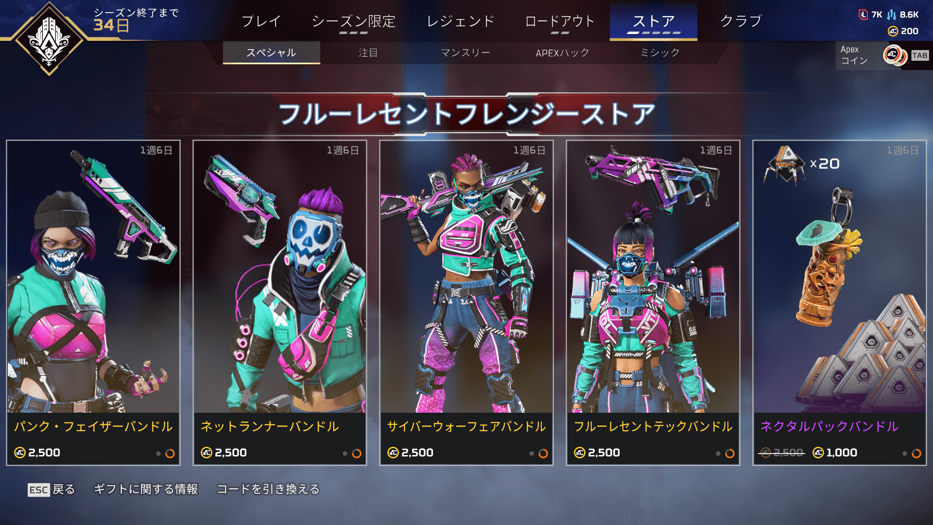 【APEXストア情報】フルーレセントフレンジーストアが開催!「レイス」「オクタン」「バンガロール」の新スキンやお得な「100パックバンドル」が登場【詳細まとめ】