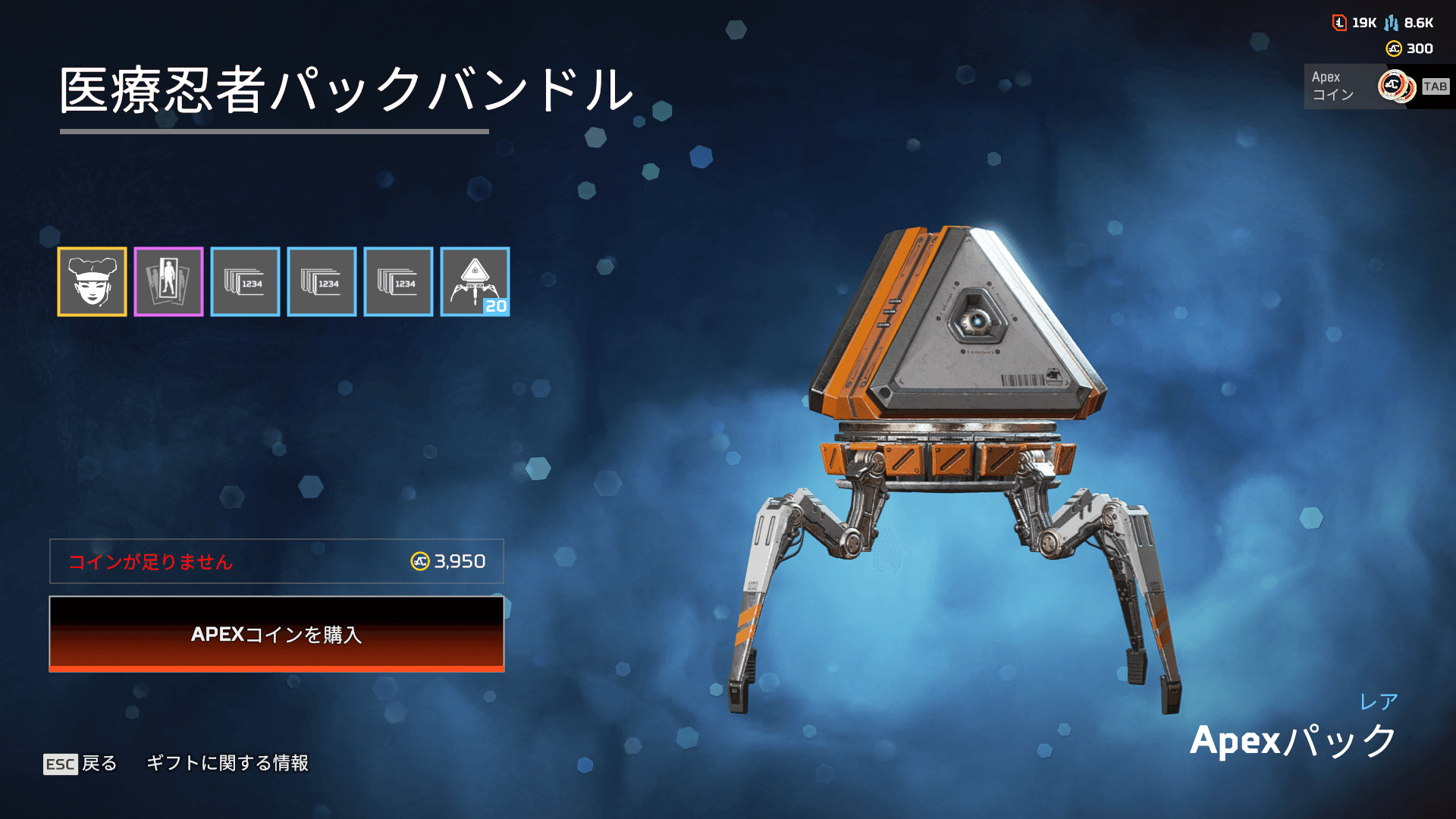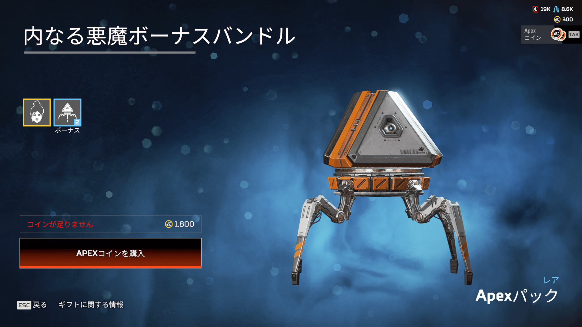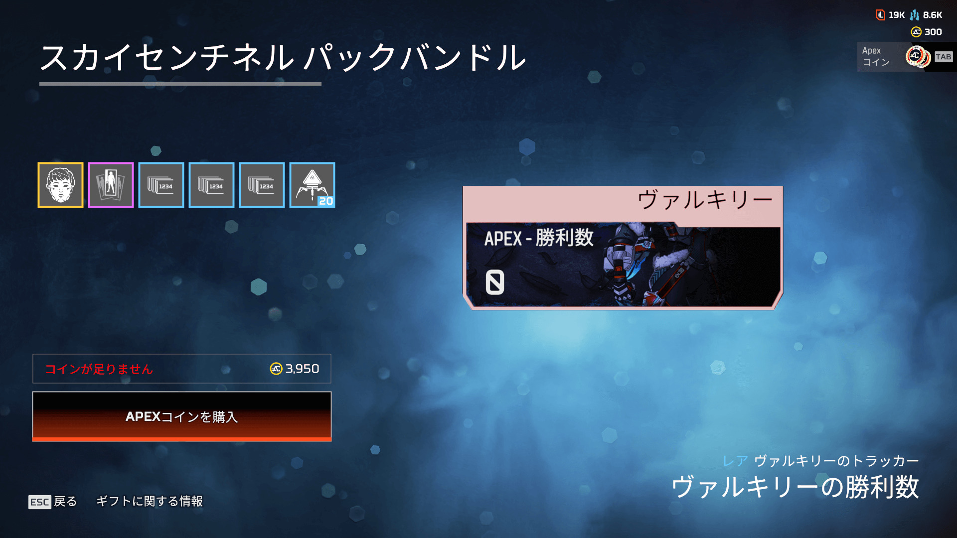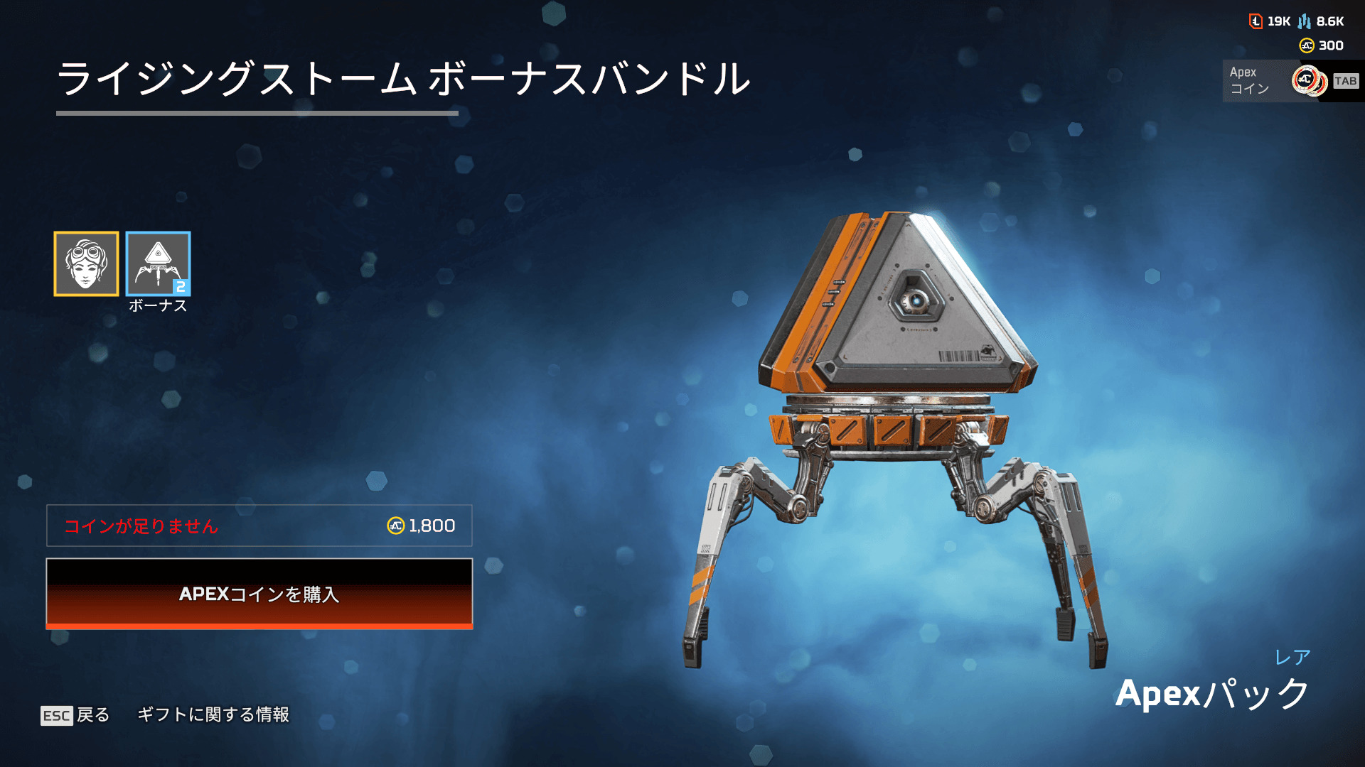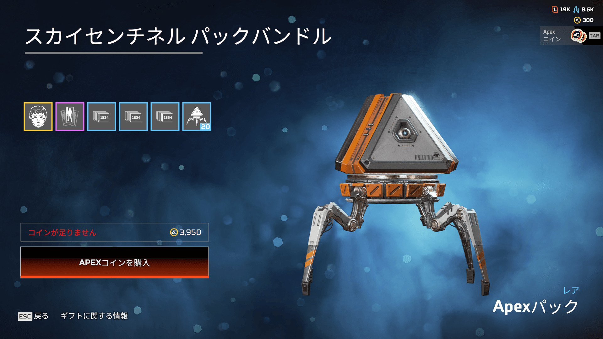 ヴァルキリー、パスファインダー、ライフラインのバンドルですが「APEXパックが20個付属しているセット」と「パックが付属していないセット」の2種類があります。