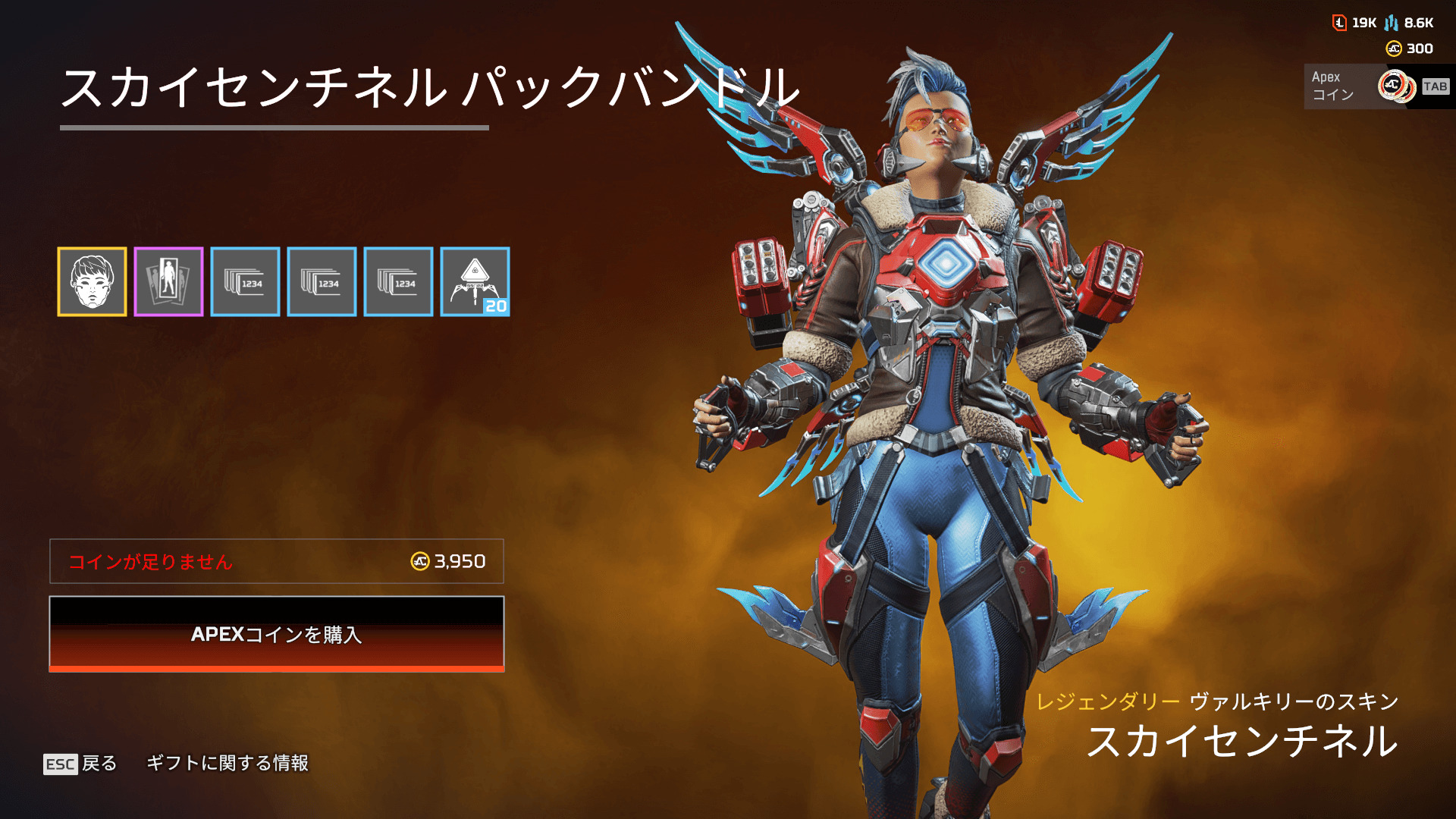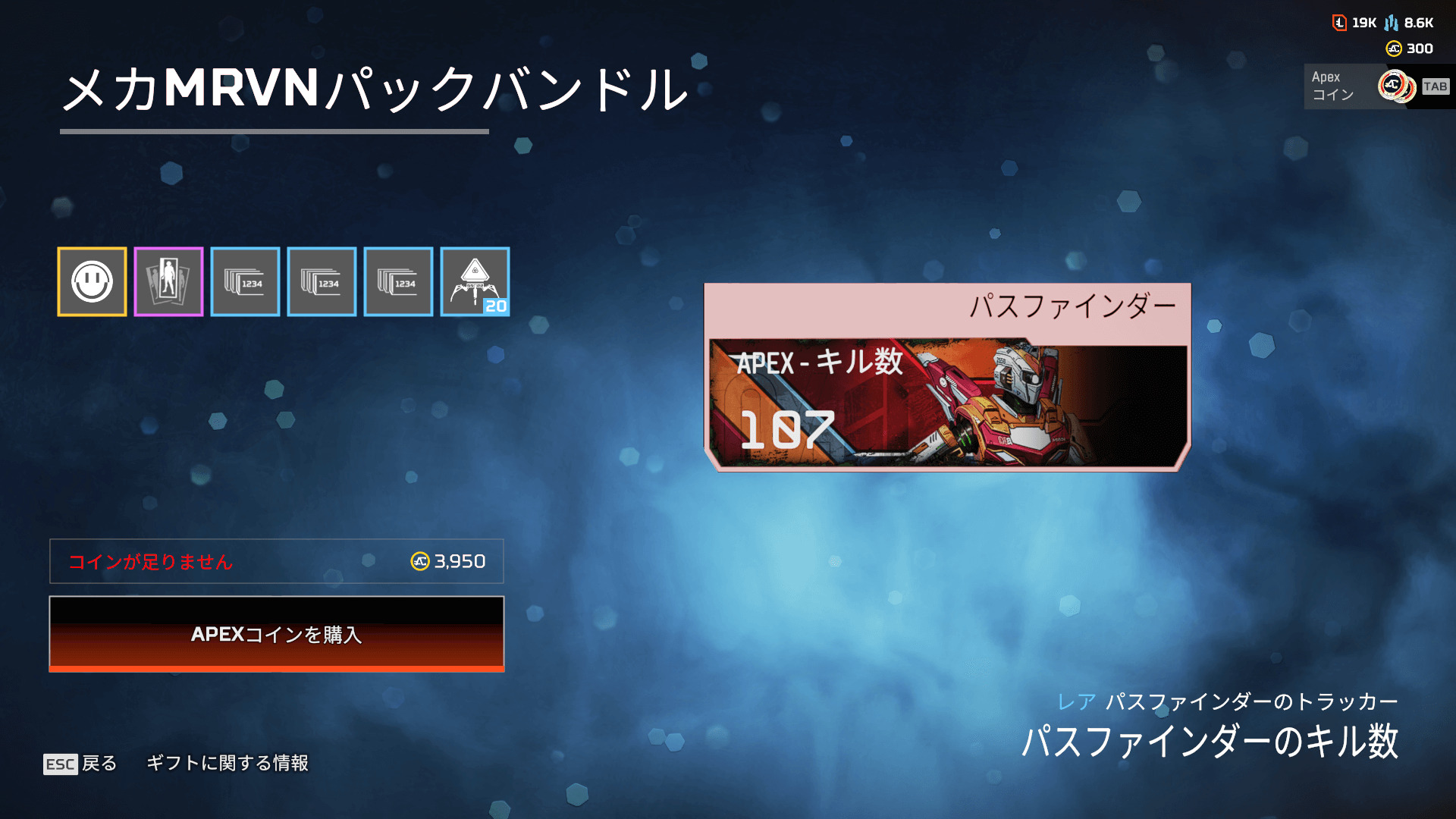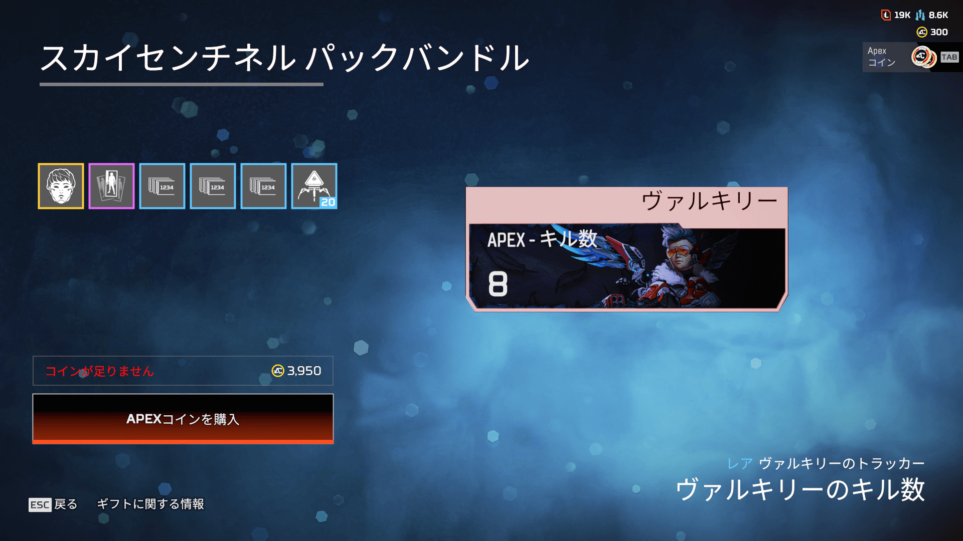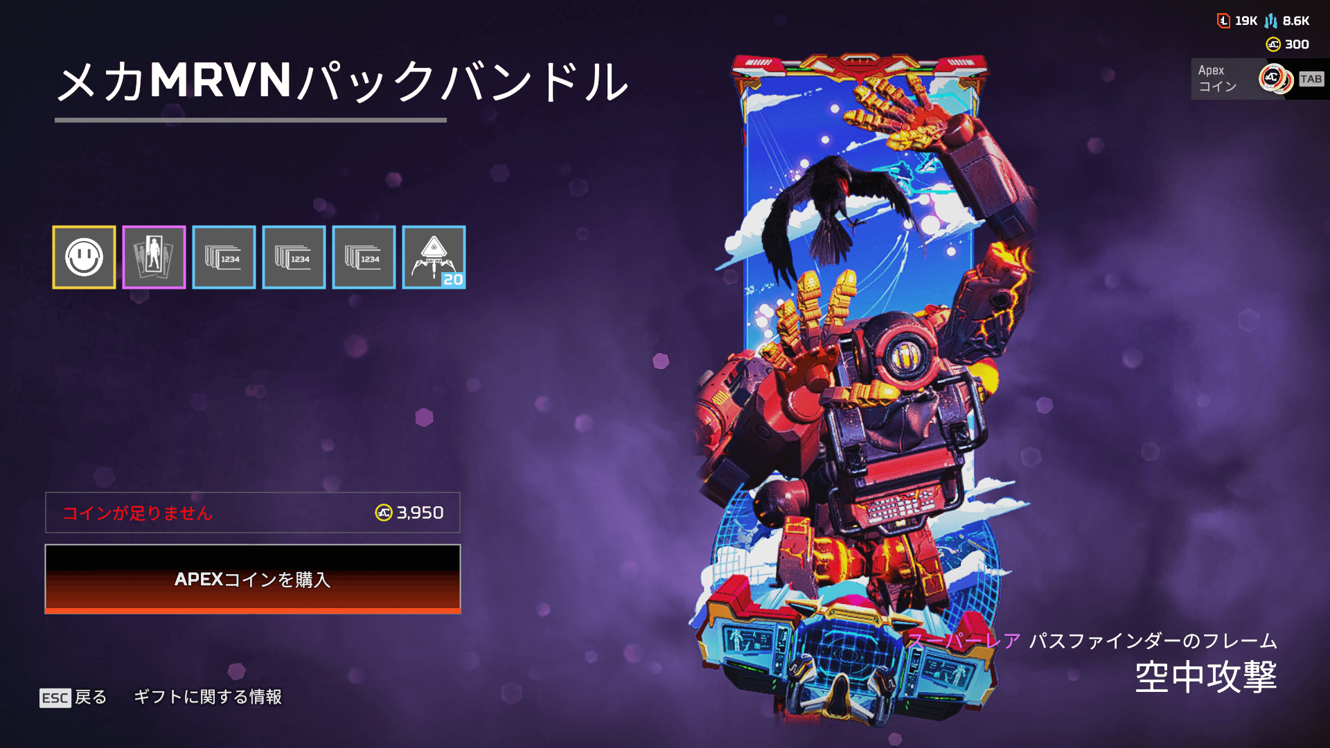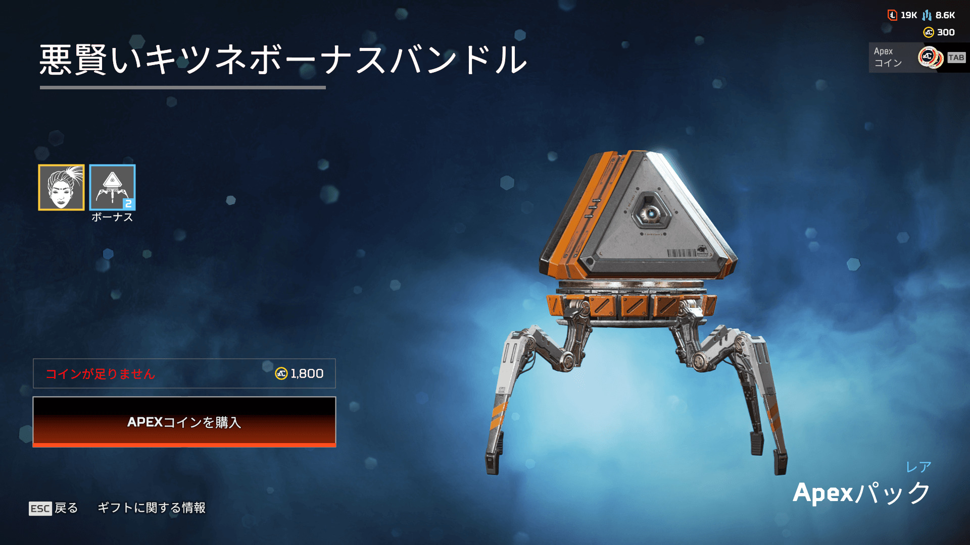 ヴァルキリー、パスファインダー、ライフラインのバンドルですが「APEXパックが20個付属しているセット」と「パックが付属していないセット」の2種類があります。