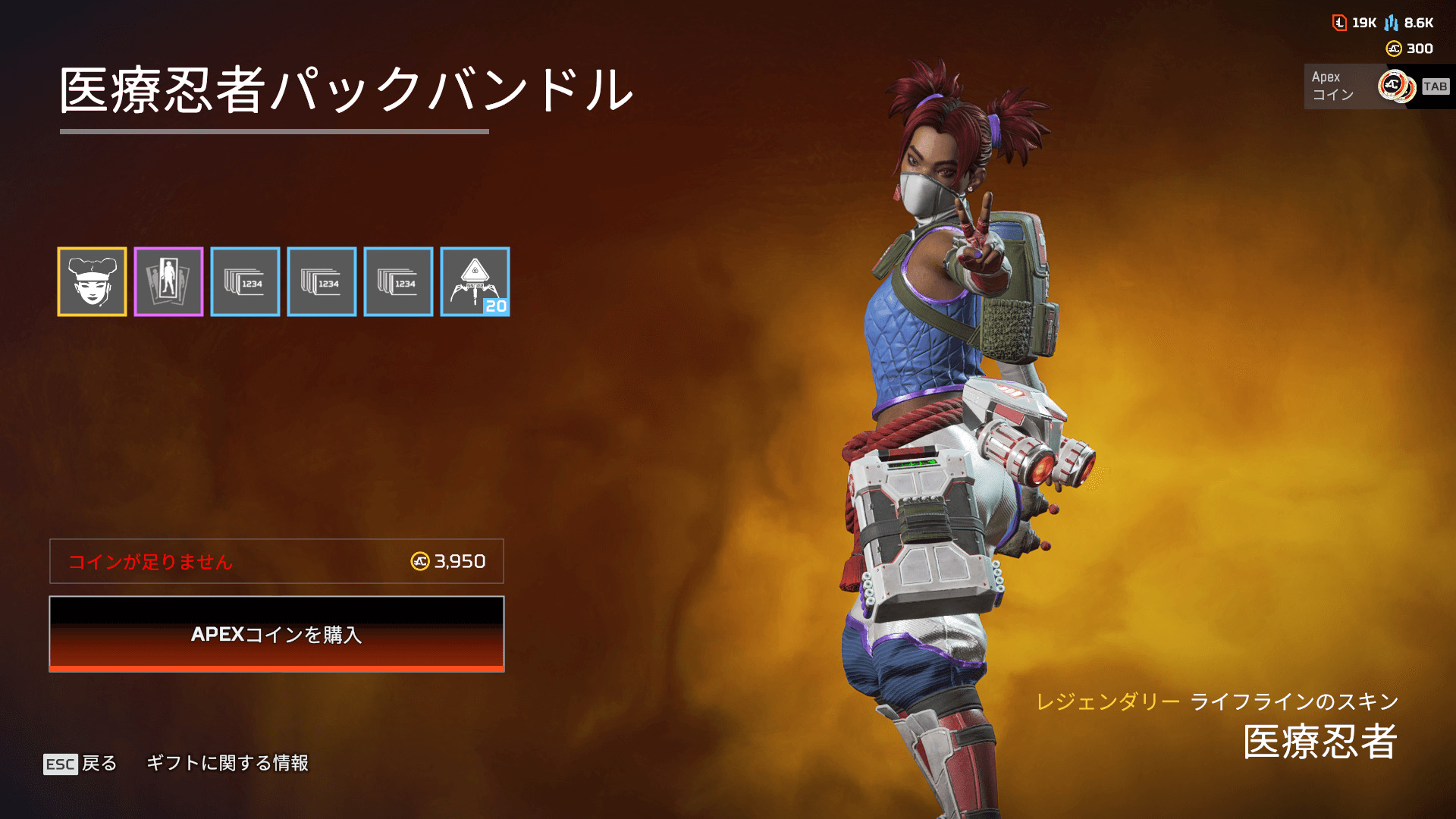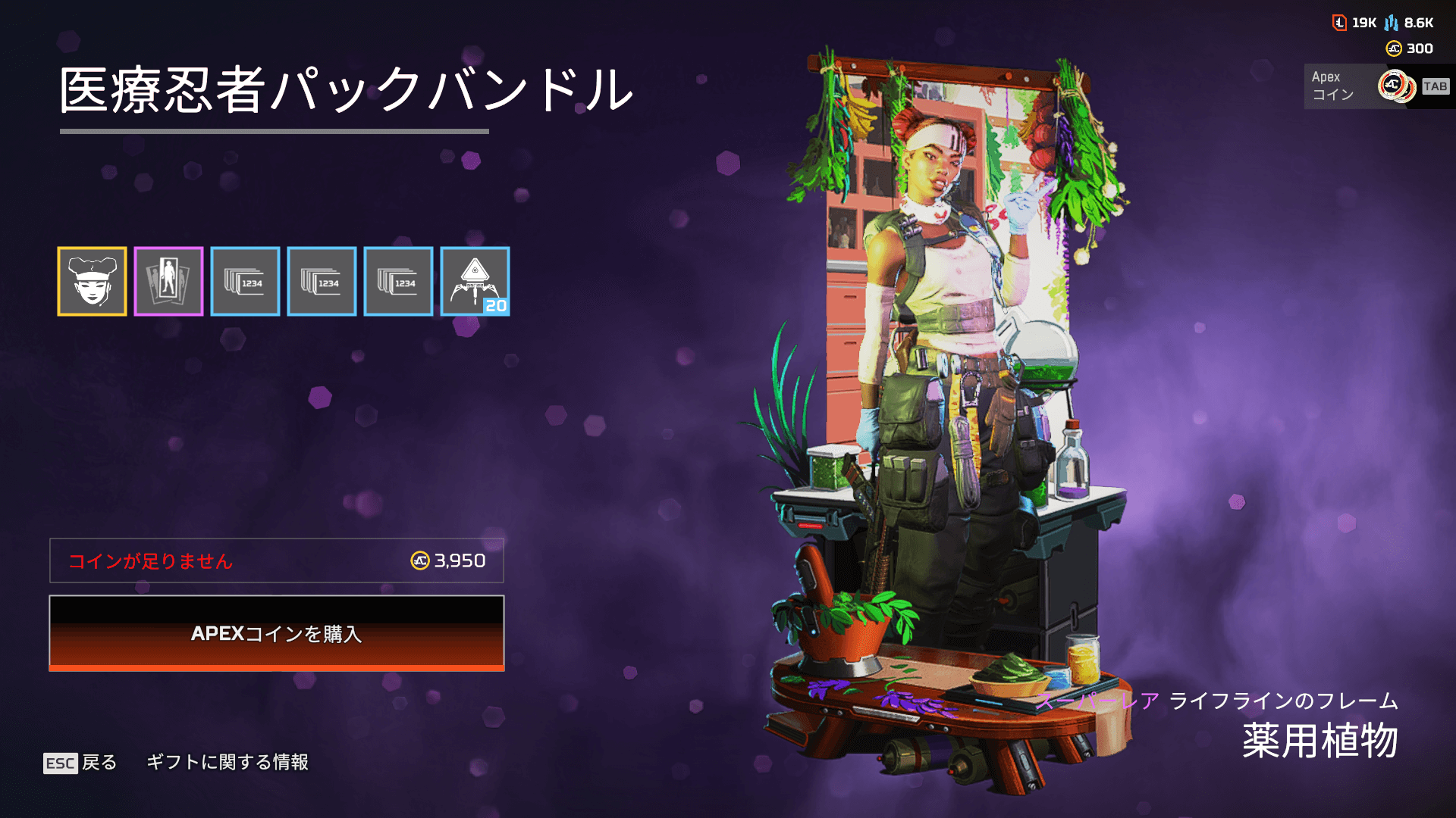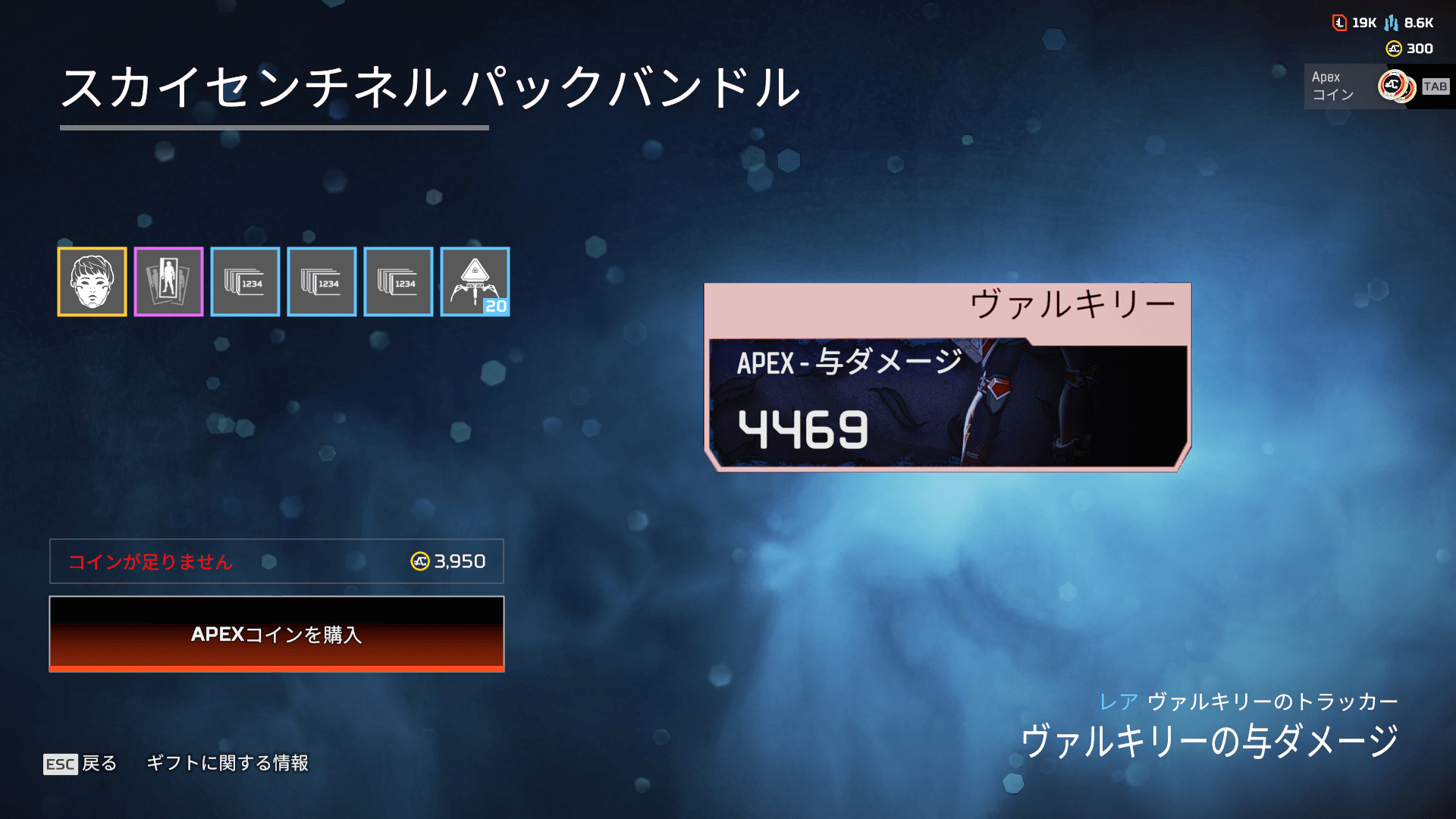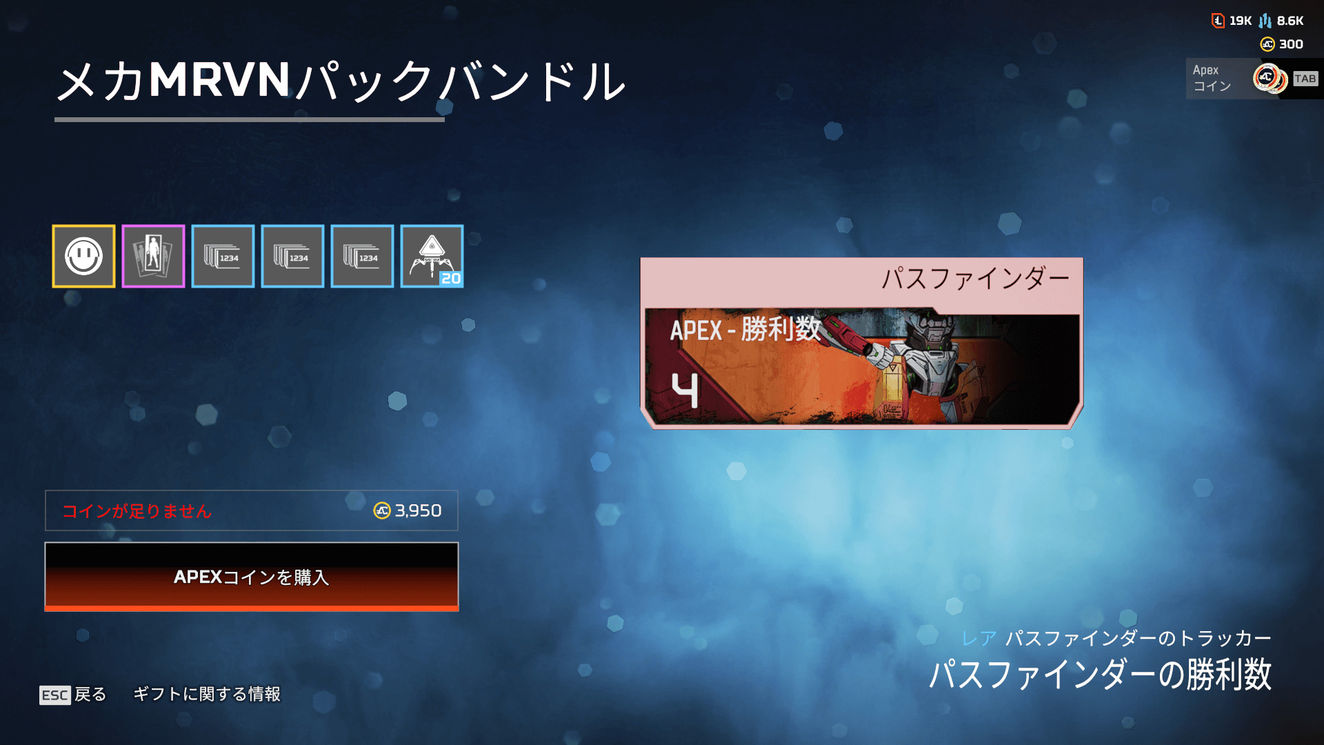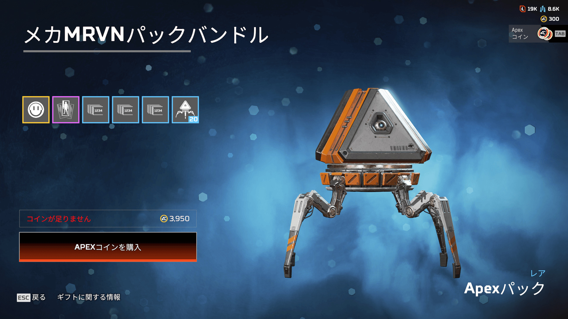 ヴァルキリー、パスファインダー、ライフラインのバンドルですが「APEXパックが20個付属しているセット」と「パックが付属していないセット」の2種類があります。