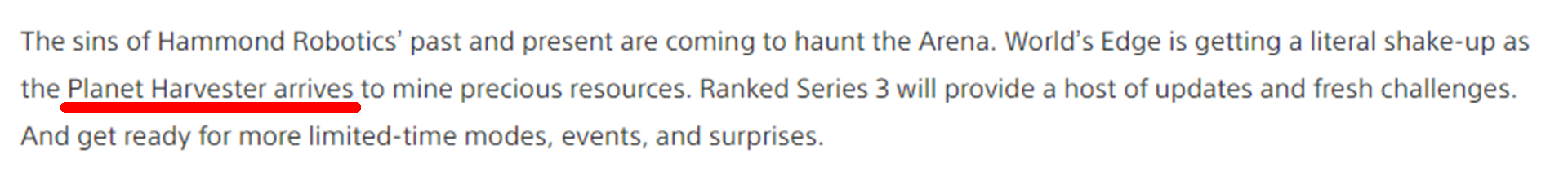 プレイステーションブログの方には「燃料を収集するためにハーベスターが到着しワールズエッジが変化します。」と書かれました。