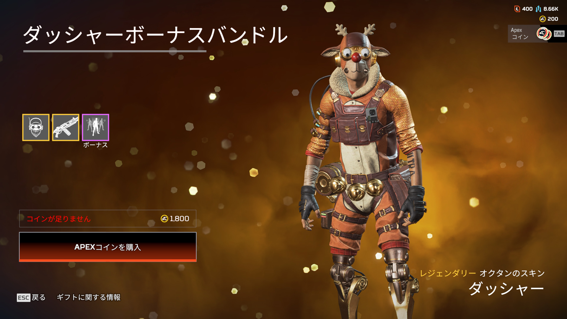 【APEX】過去に登場したクリスマススキンが再販!!「トナカイオクタン」や「白くまジブ」など