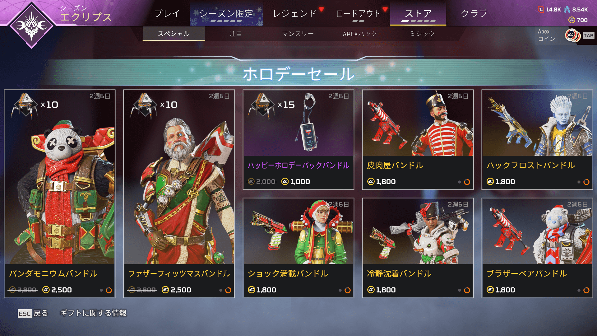 【APEXストア情報】ホロデーセールが開幕!「新規クリスマススキン2種類」と「過去クリスマススキン」が登場