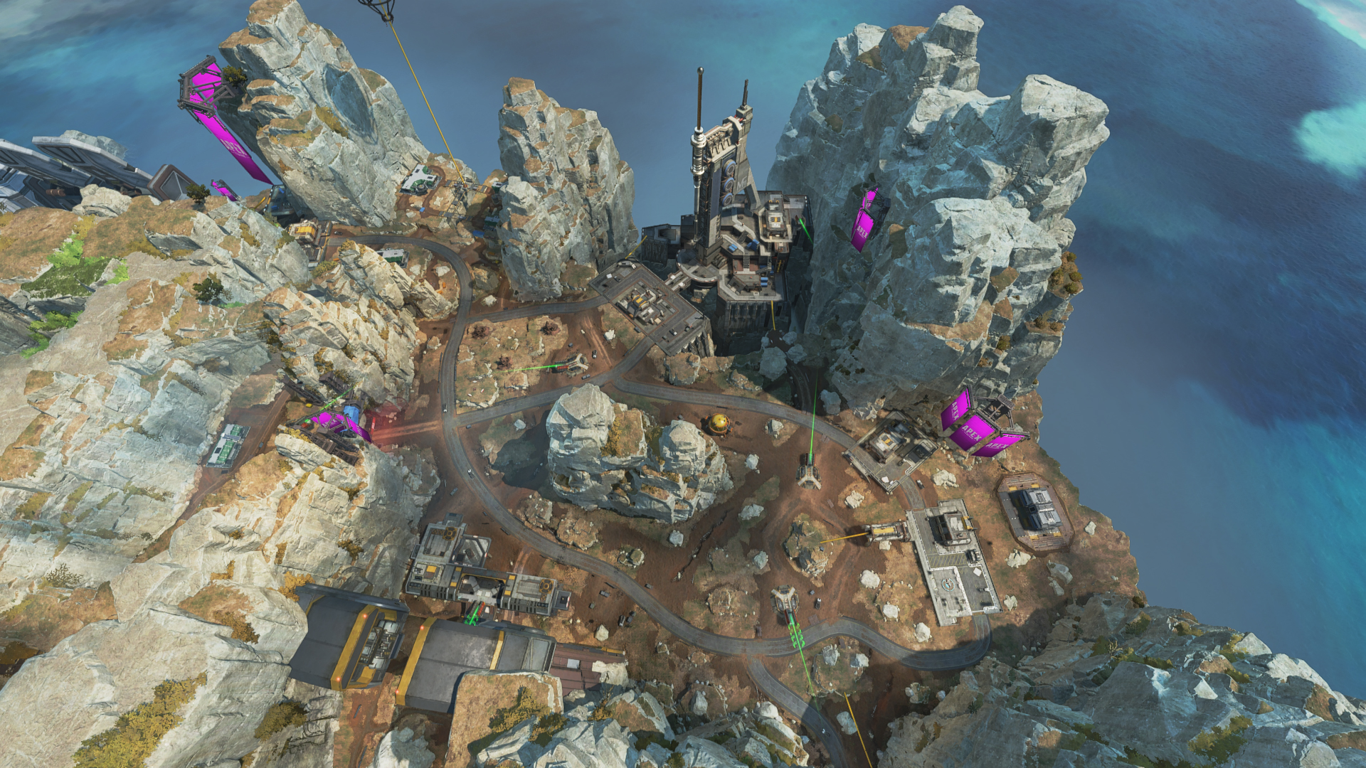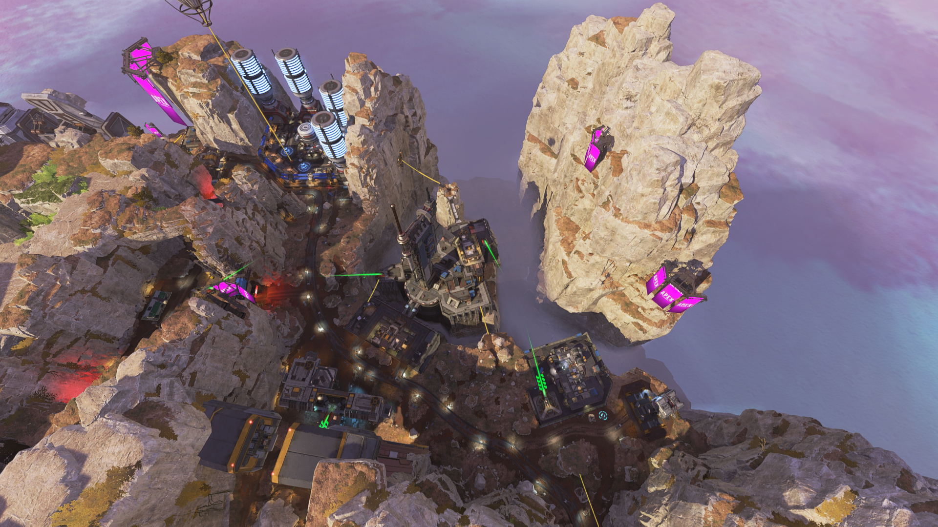 今回のアップデートで取り組みたかった最大の課題のひとつは、マップの高所にドロップするプレイヤーの少なさを解決することでした。ZEUSステーションの追加に加えて、これらのエリアとストームポイントの残りのエリアとの連携を改善するために、このゾーンの全体的な規模を小さくすることが重要であると感じました。