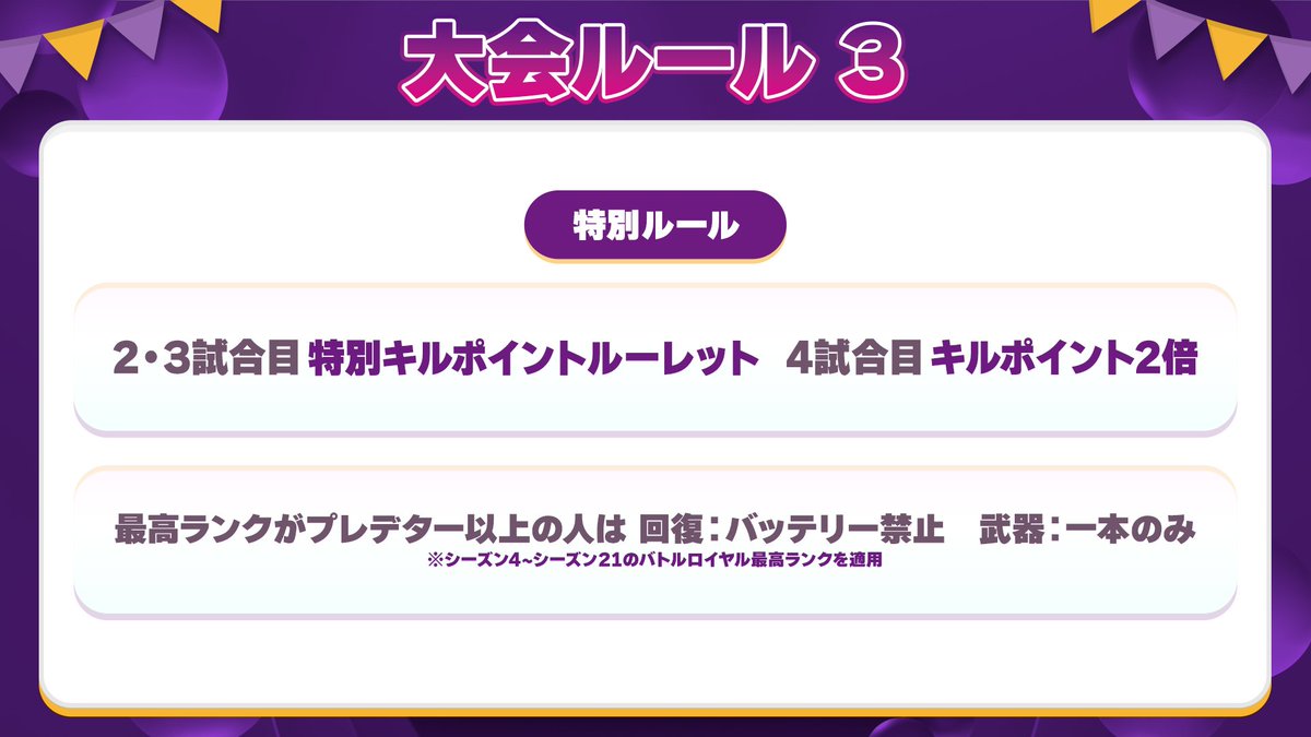 ■招待選手と一般参加者が混在、ランク帯も混在しているため特別なルールが設けられています。