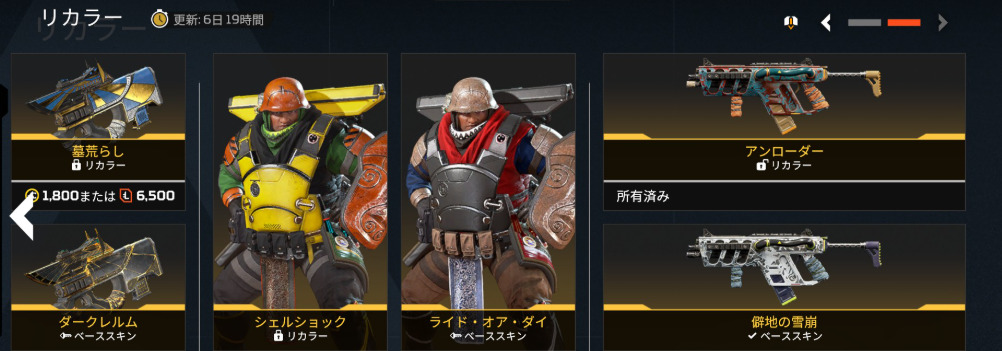 ストア情報【APEX】覚醒ストア再販&リカラー更新 2025年11月12日 2025年11月12日最新記事 【APEX】12.17ワイルドカード&ストア追加情報 【APEX】覚醒ストア再販&リカラー更新 【APEX】レジェンドのセリフ関連の不具合修正が実施 【APEX】SangJoon選手 兵役へ お気をつけて(何故か、反省会に立ち会ってしまったALGS札幌) 【APEX】パワーソードがワイルドカードのミシック武器で今シーズン再登場か 本日のストアのアップデートで覚醒ストア再販が開始され&リカラーが更新更新されました!◆覚醒◆リカラー Facebook Twitter